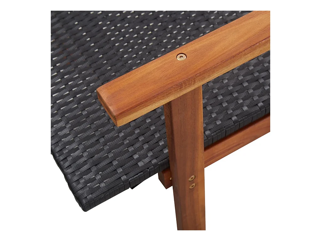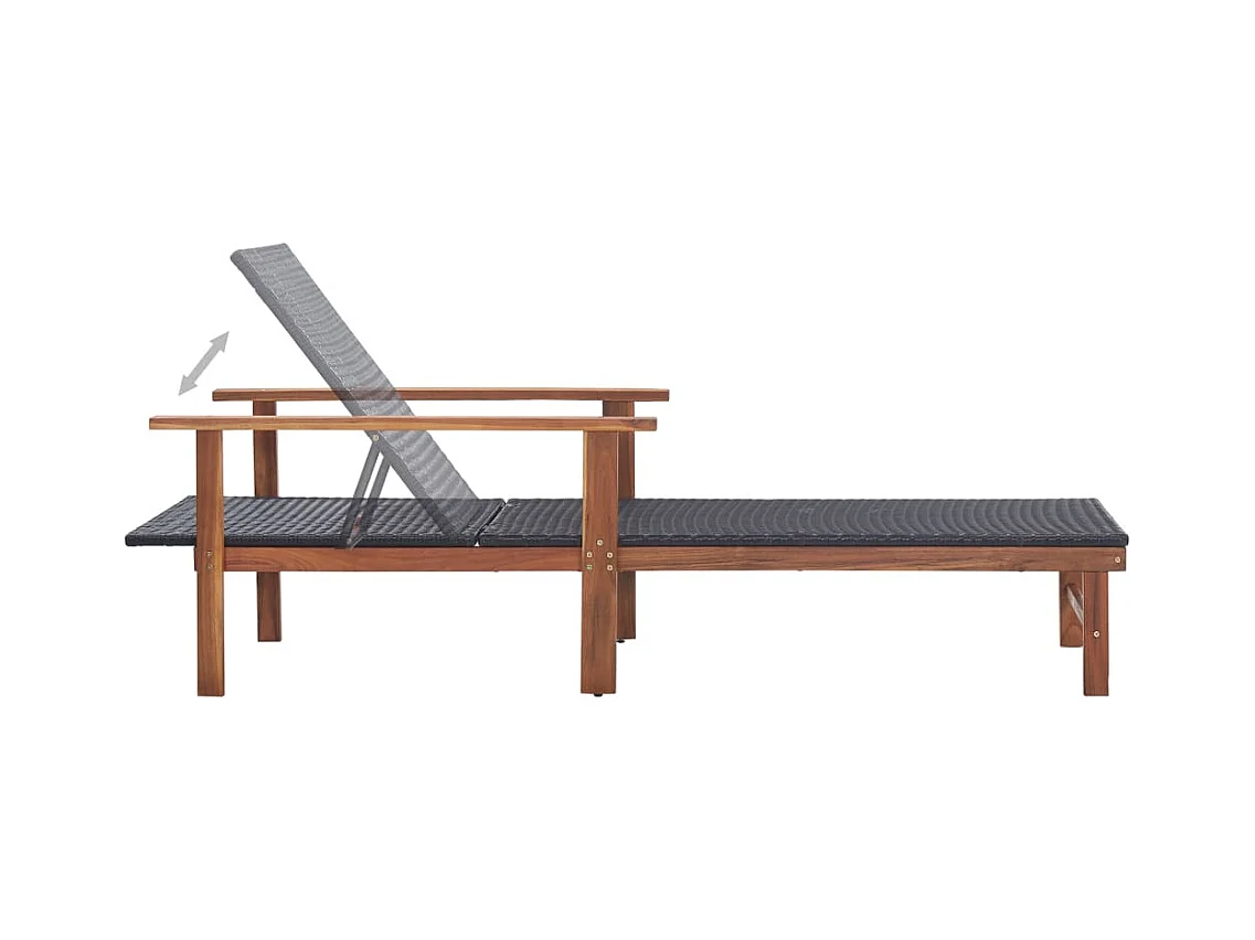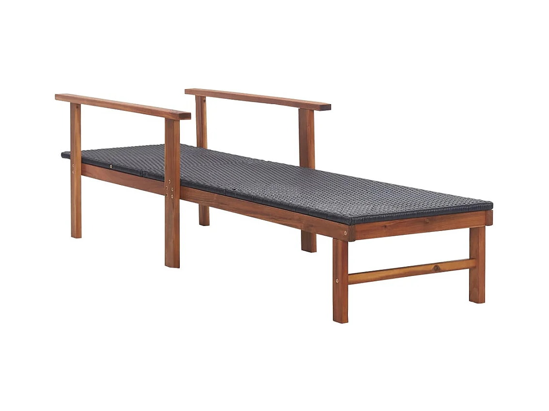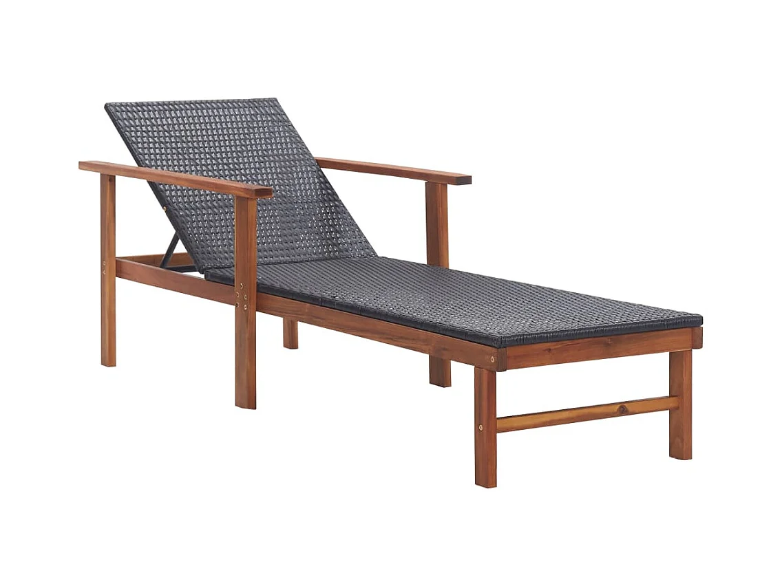 Loungestoel van geweven hars en massief acaciahout, zwart
