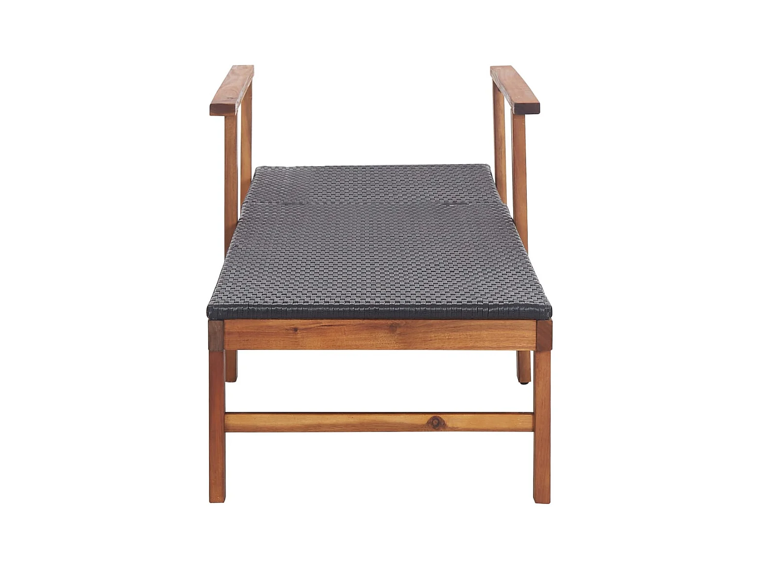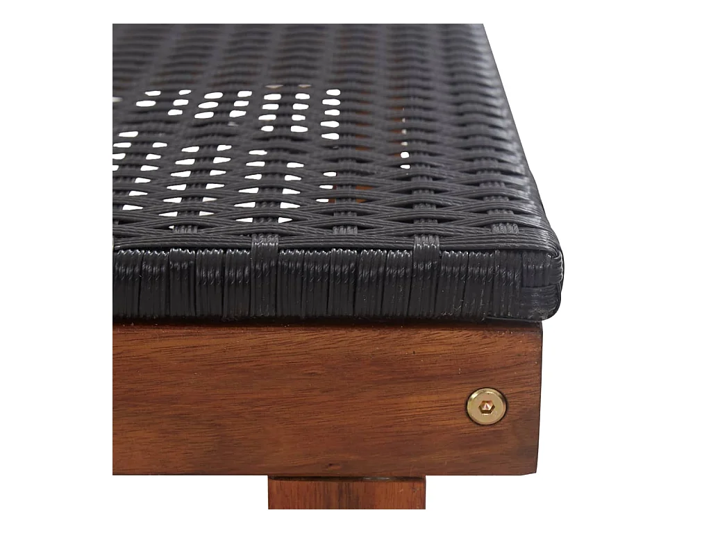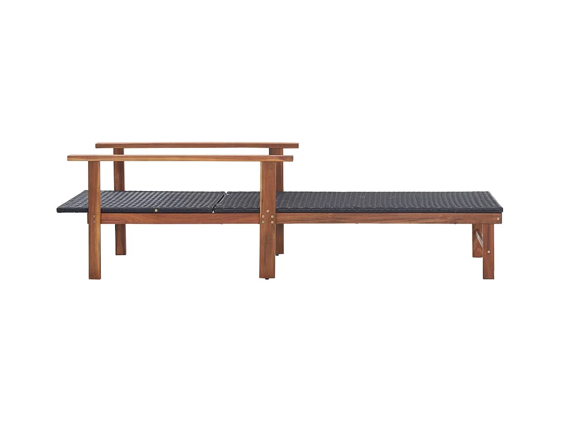 Loungestoel van geweven hars en massief acaciahout, zwart