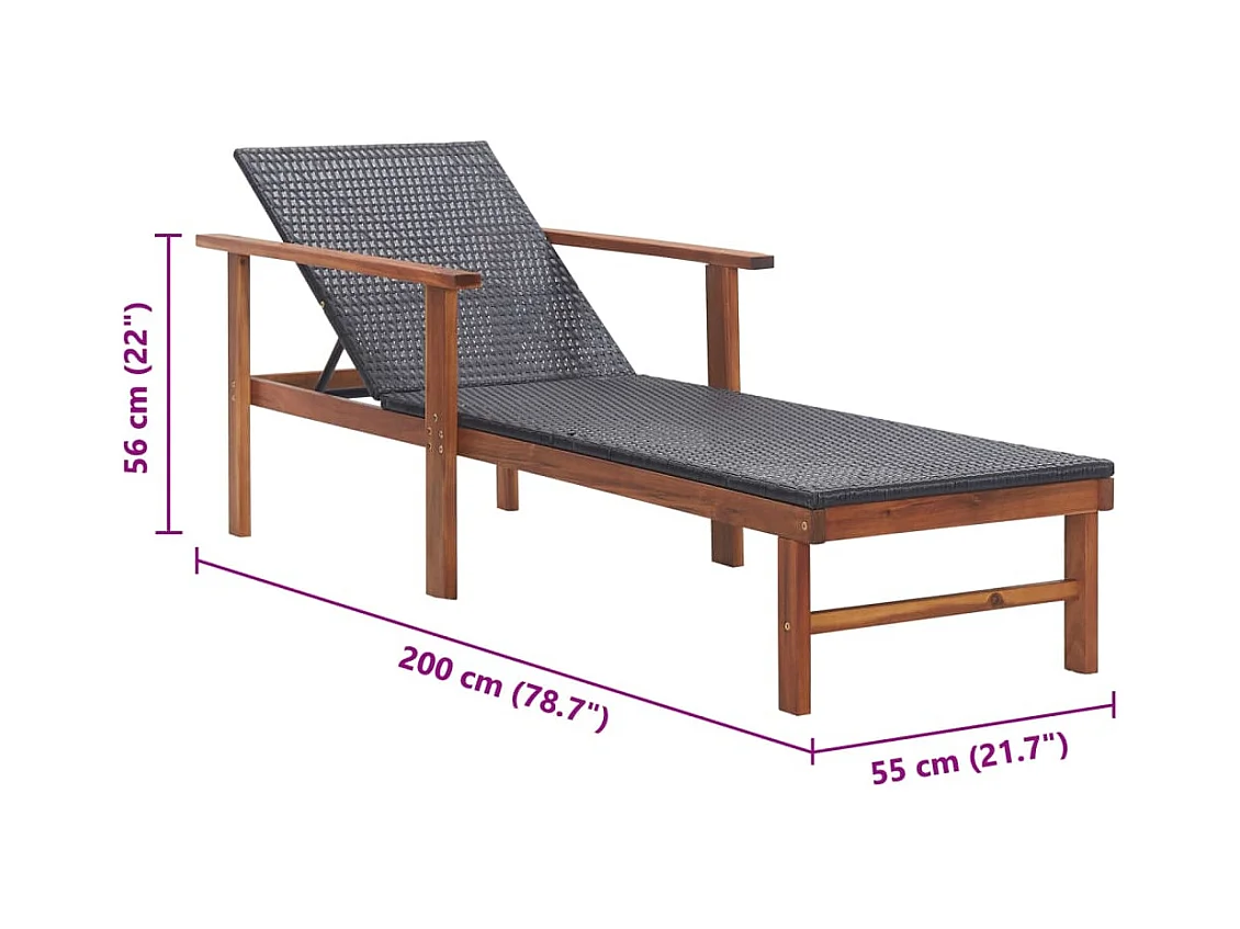 Loungestoel en kussen Wicker hars en acacia hout Zwart