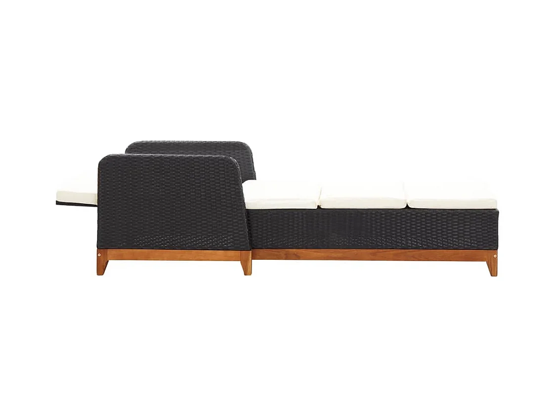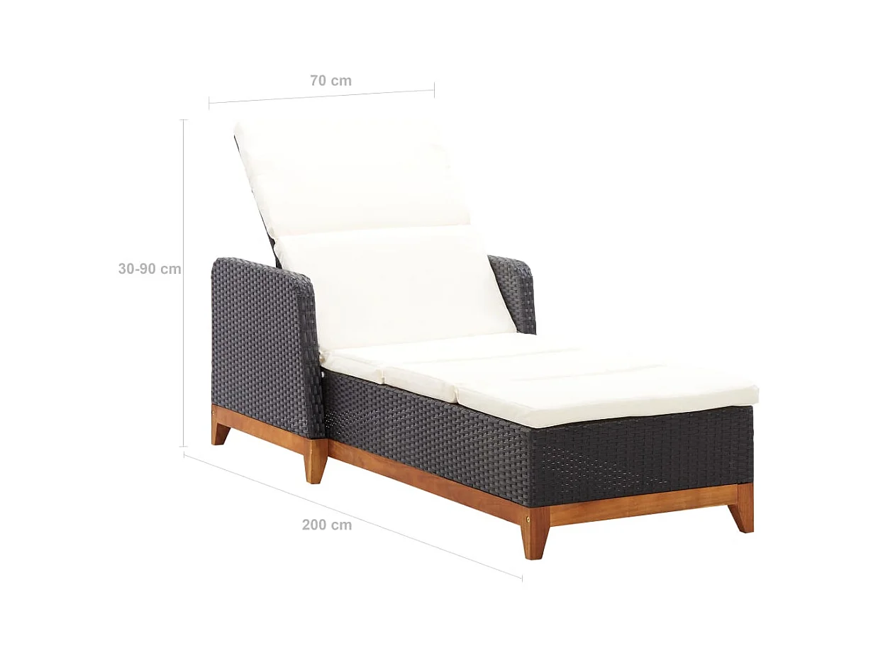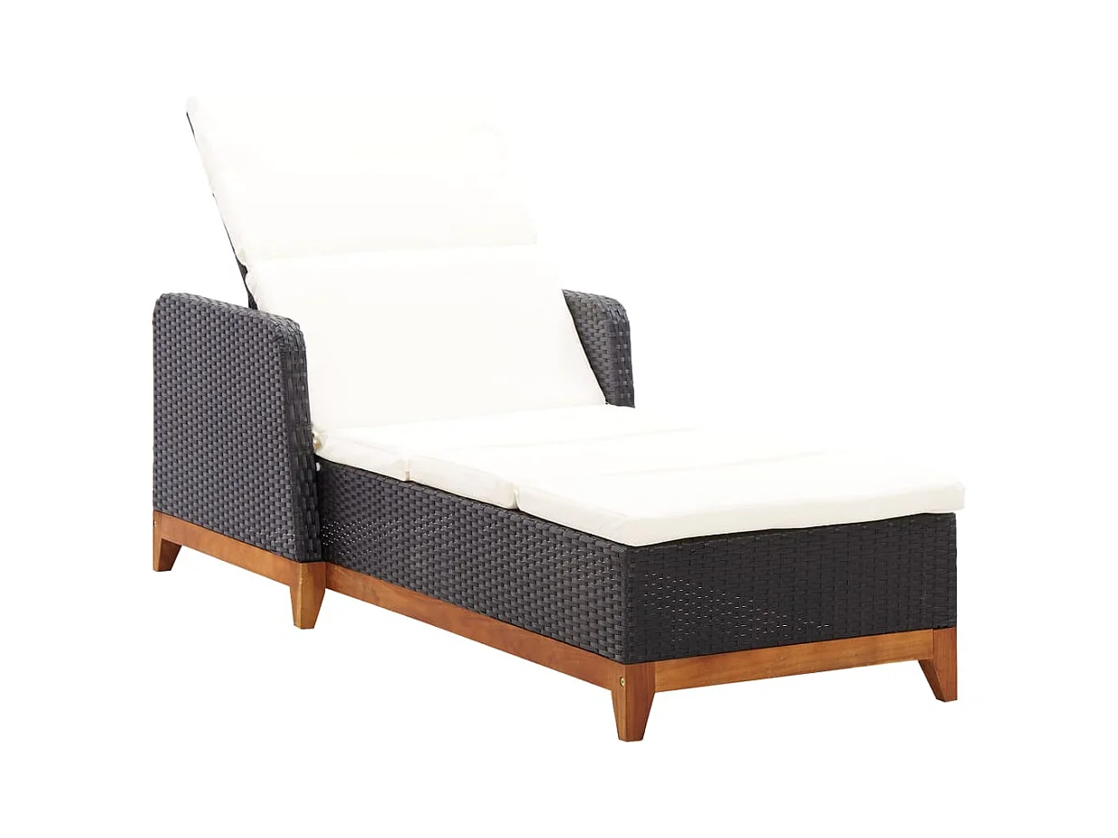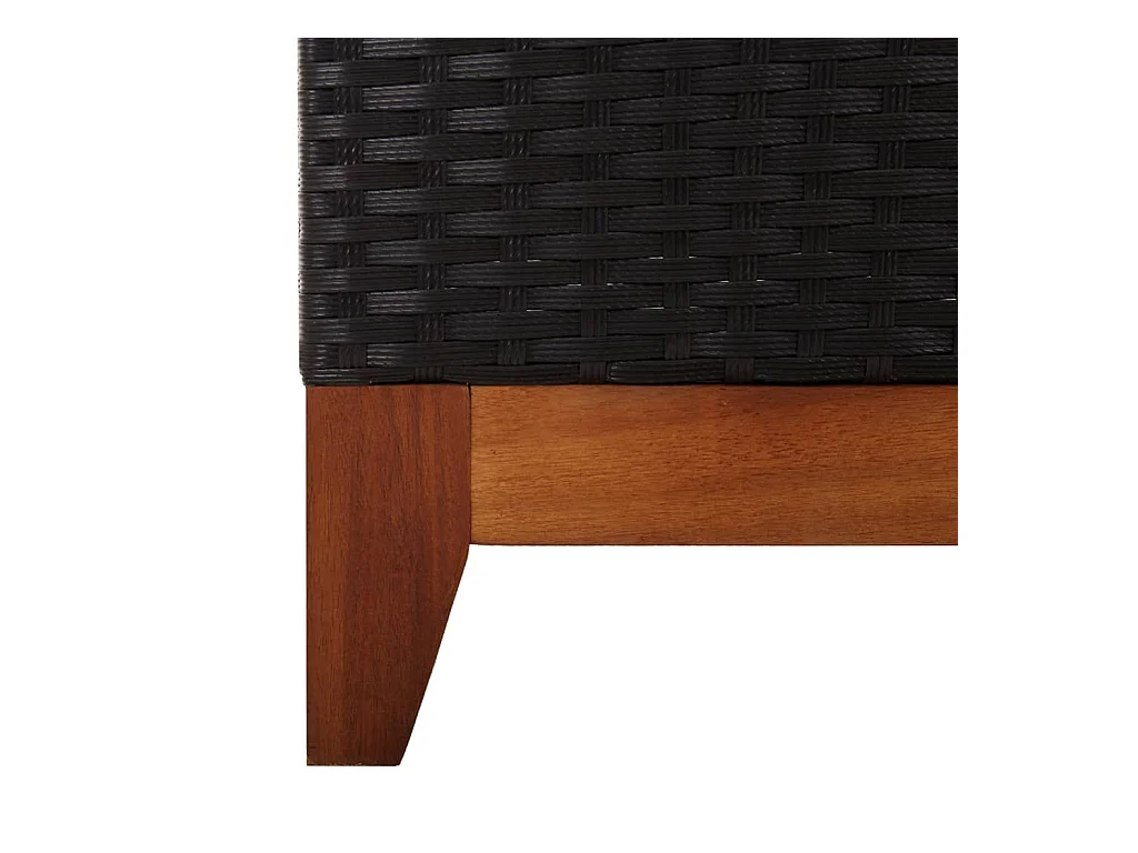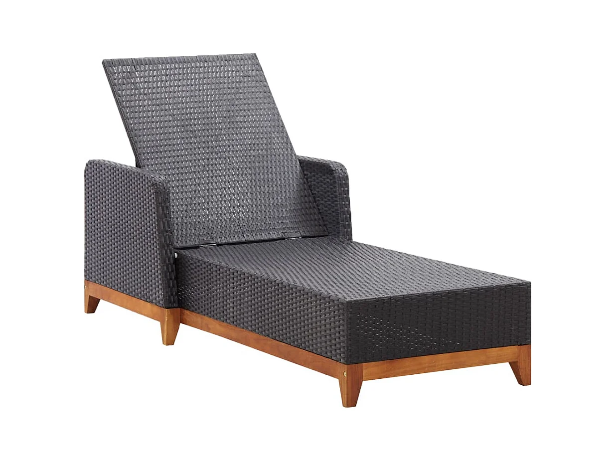 Loungestoel van geweven hars en massief acaciahout, zwart