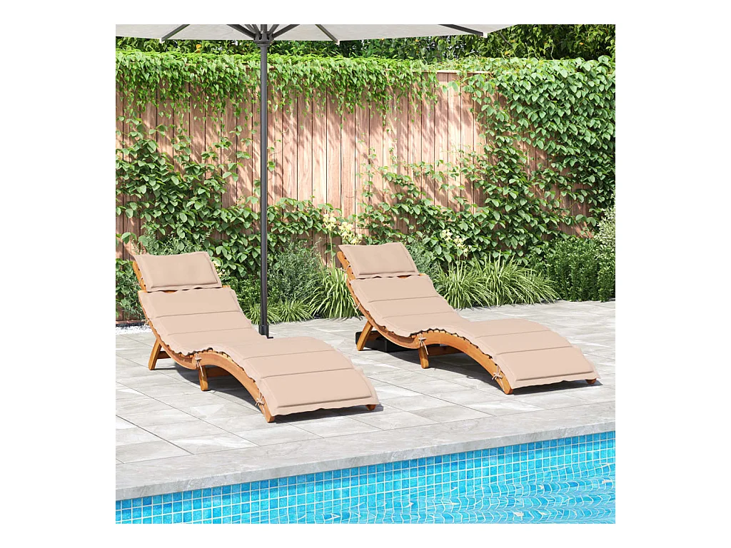 Loungestoelen met kussens, set van 2, beige, massief acaciahout