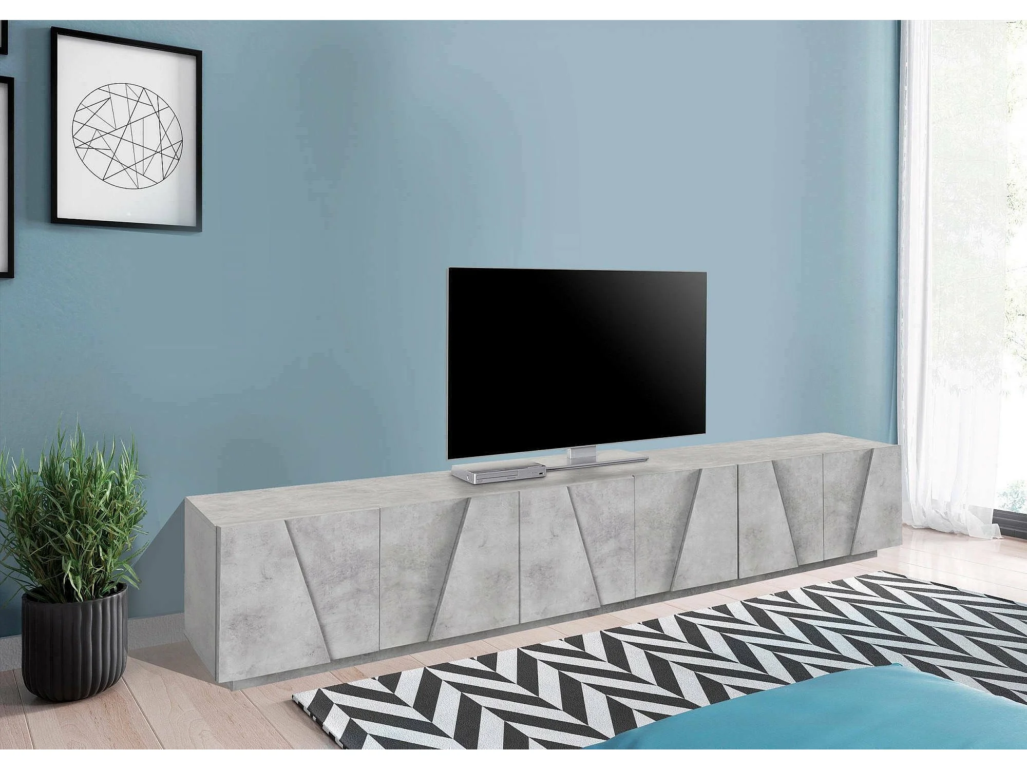 Lucas TV-meubel, Laag woonkamerdressoir, Onderstel televisiekast, 100% Made in Italy, 244x44h46 cm, Donker cement