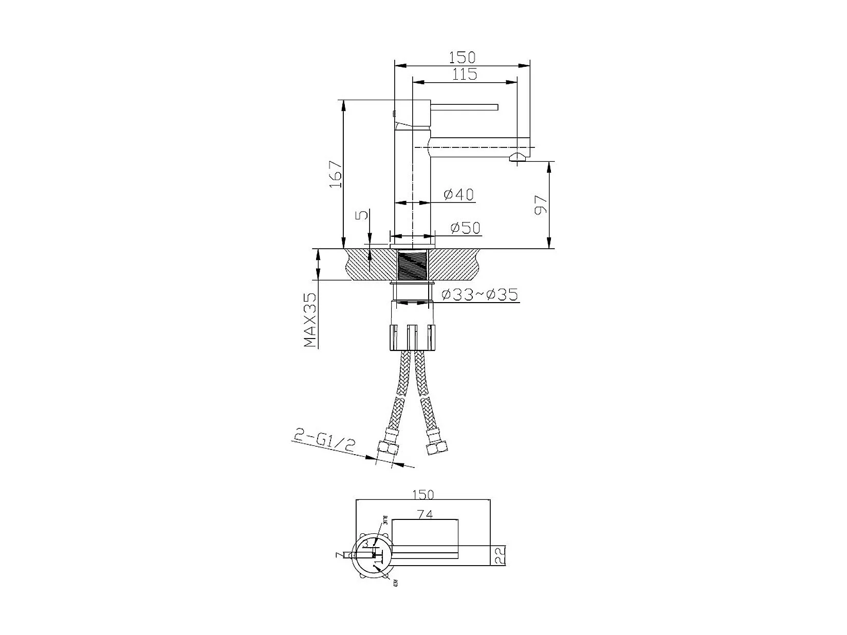 Luisa lage wastafelmengkraan in geborsteld koper - Essebagno