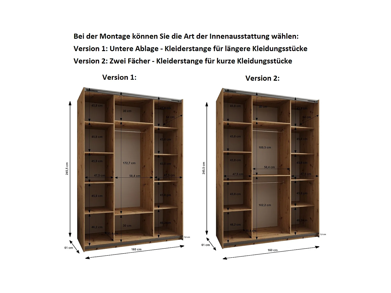 KLEDINGKAST MET SCHUIFDEUREN Lux 2 245,5/160/64 (Zwart/Artisan/Zilver)