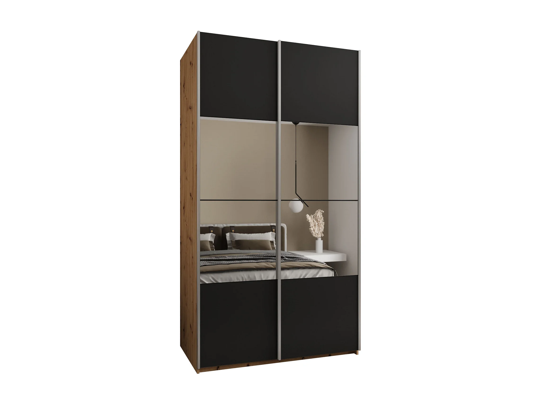 KLEDINGKAST MET SCHUIFDEUREN Lux 4 245,5/140/64 (Artisan/Zwart/Zilver)