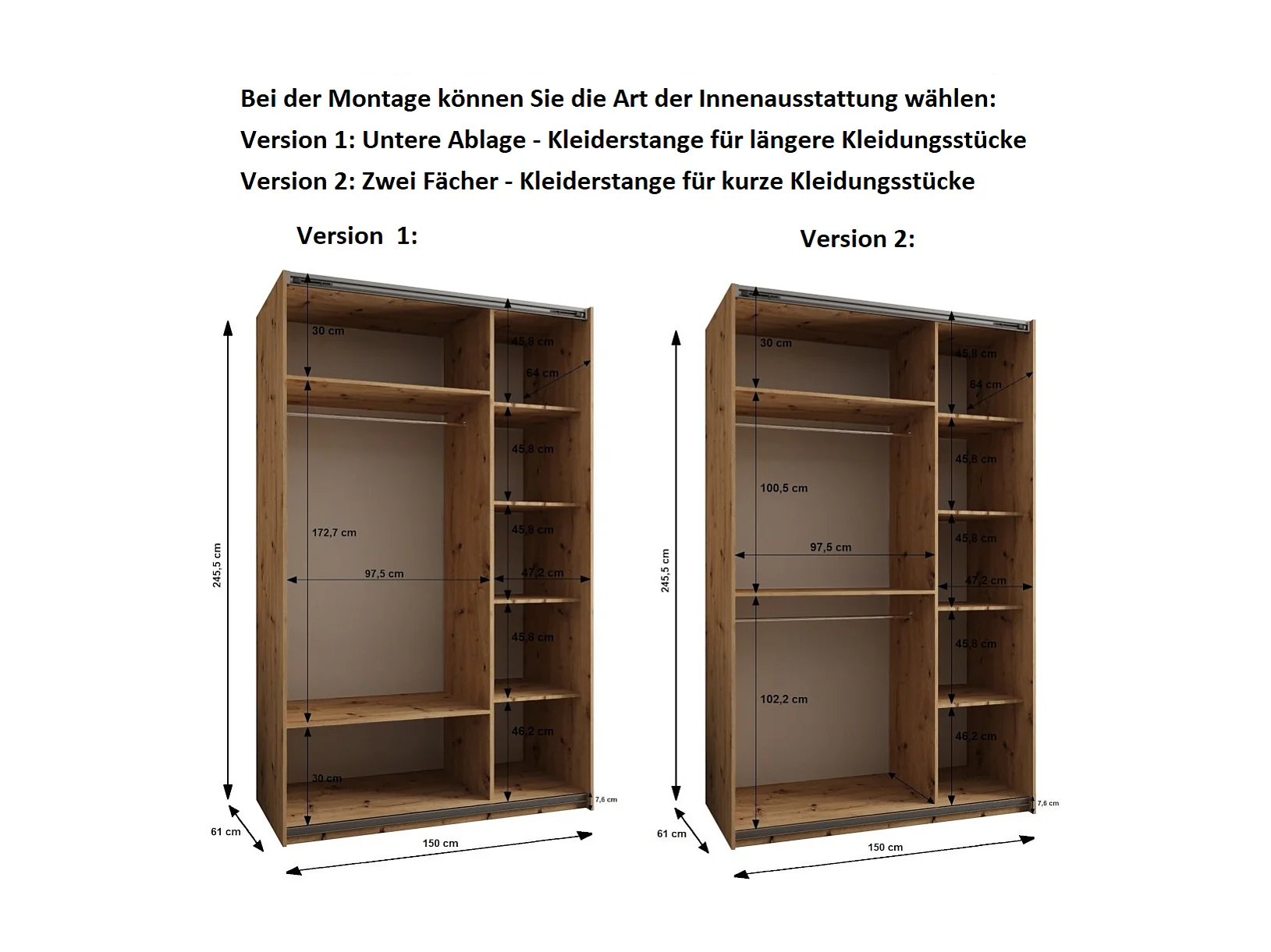 KLEDINGKAST MET SCHUIFDEUREN Lux 4 245,5/150/64 (Wit/Wit/Zwart)