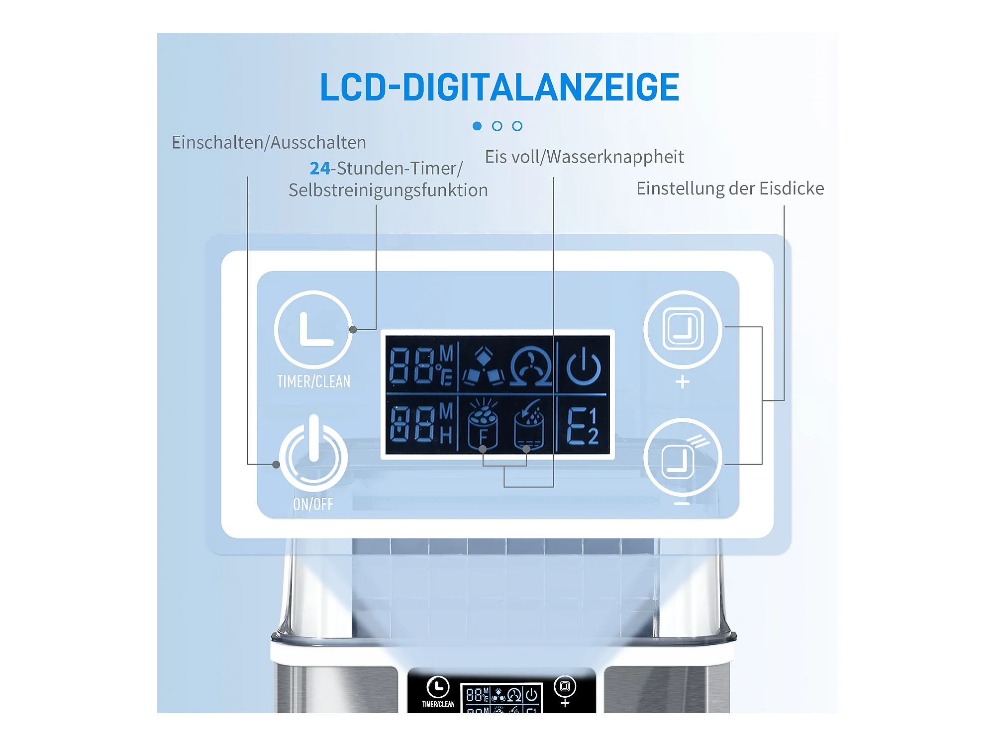 Machine met glazen, 20 kg/24u, reservoir 3,2 L, met auto-netprogramma's, roestvrij staal, zilver (36x25,2x37,1 cm)