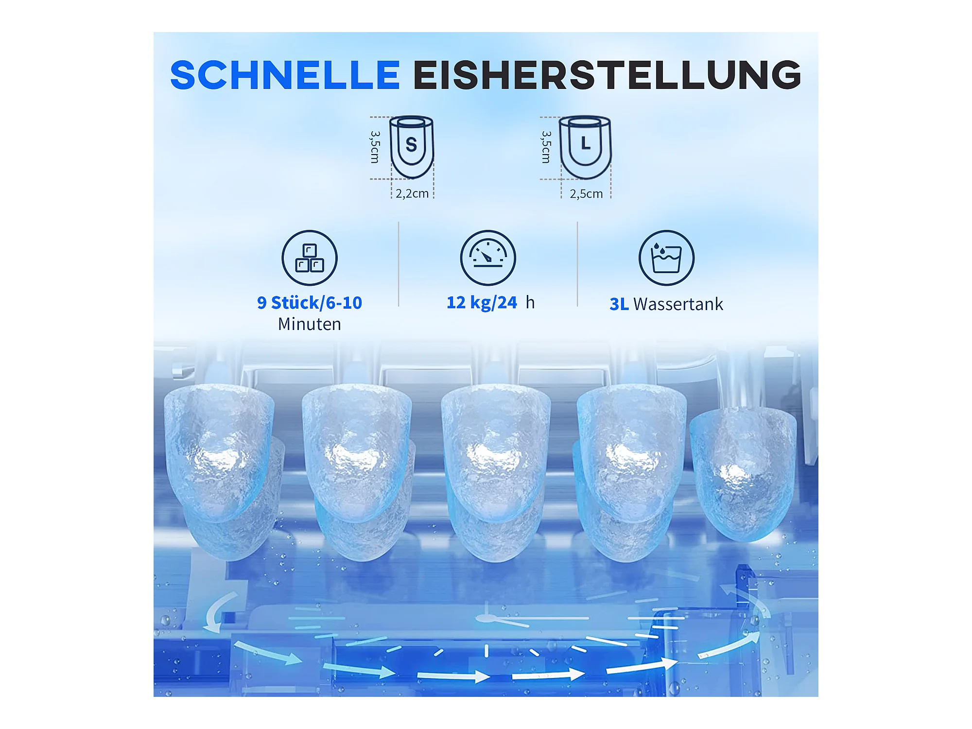 Machine met glazen, 9 glazen in 6-10 minuten, 12 kg/24u, reservoir 2 L, functie auto-net, LCD-scherm (38,9x25,2x36,3 cm)