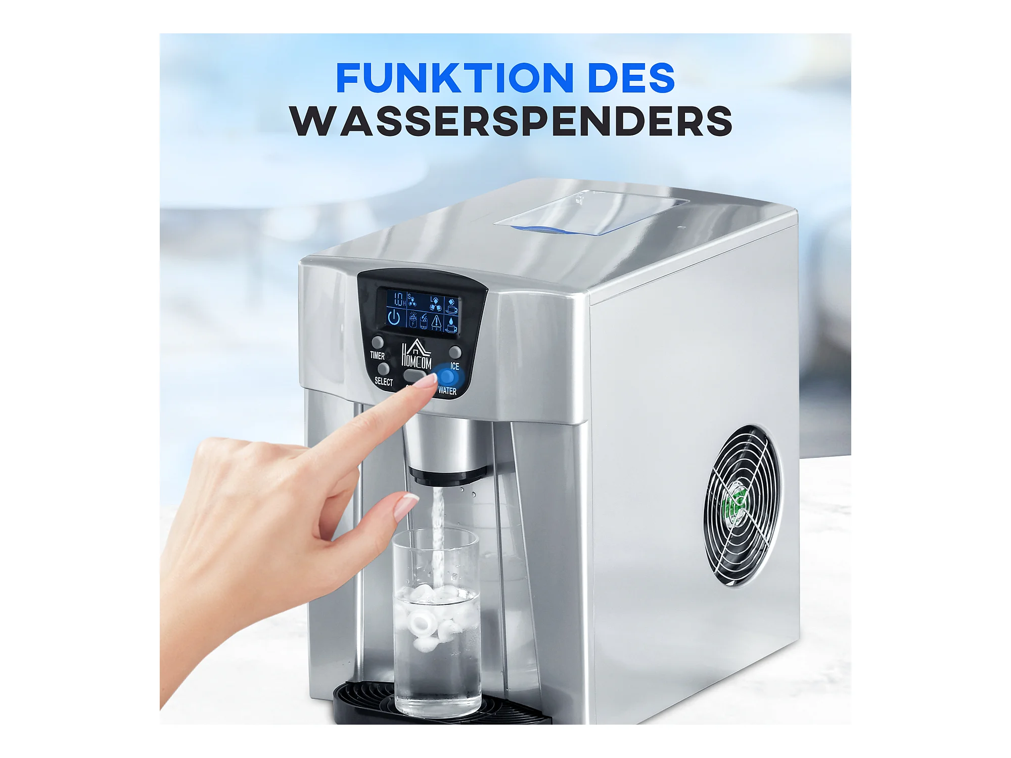 Machine met glazen, 20 kg/24u, reservoir 3,2 L, met auto-netprogramma's, roestvrij staal, zilver (36x25,2x37,1 cm)