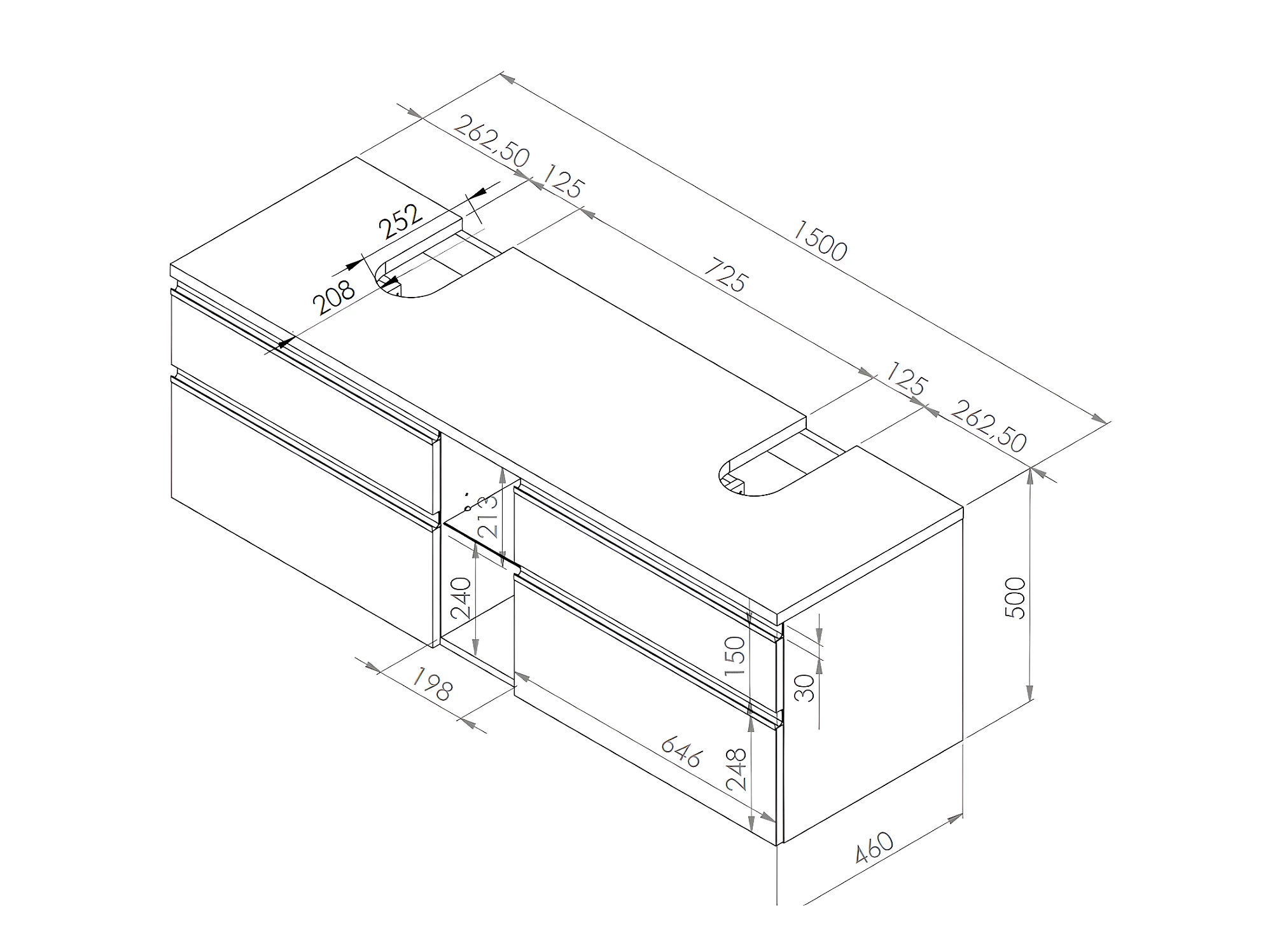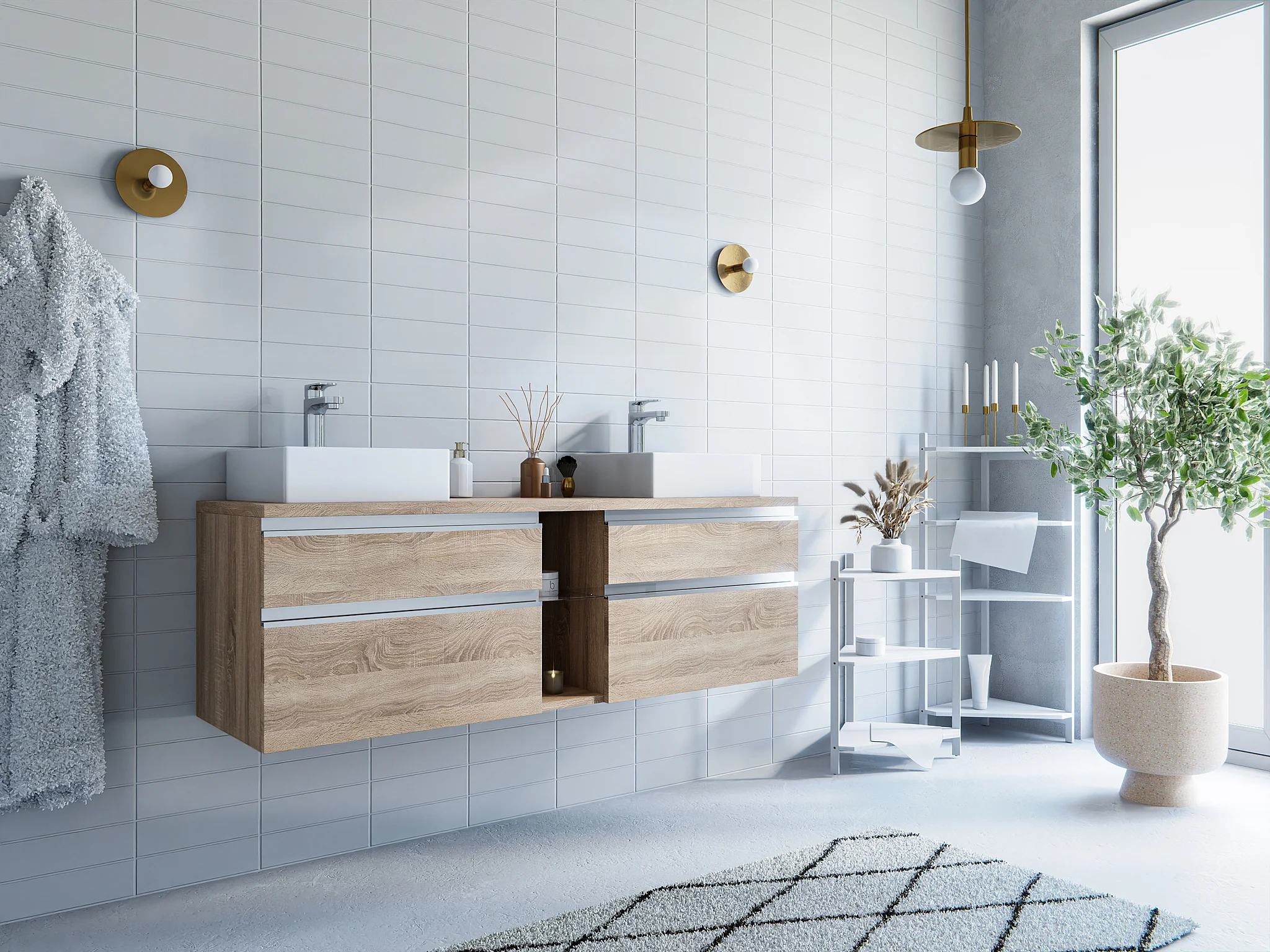 Hangend badkamermeubel met dubbele wastafel - Natuurlijk licht kleur - 150 cm - MAGDALENA II