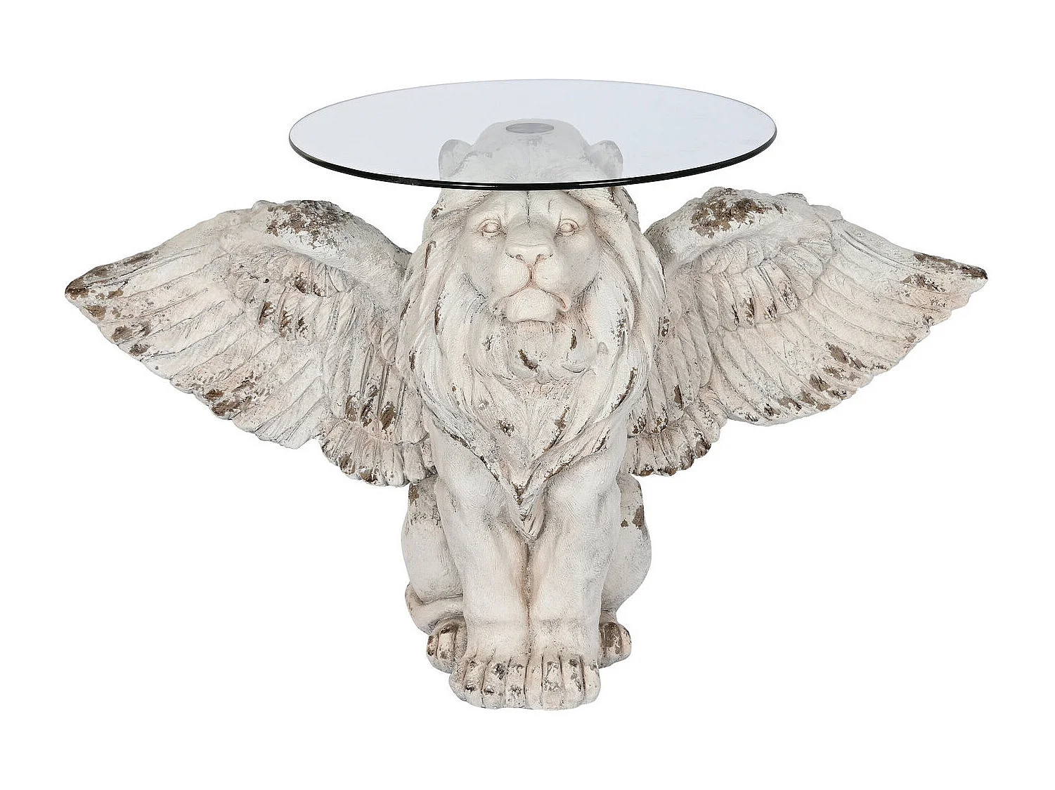 Magnesia bijzettafel 96x62x61 cm met gevleugelde leeuw