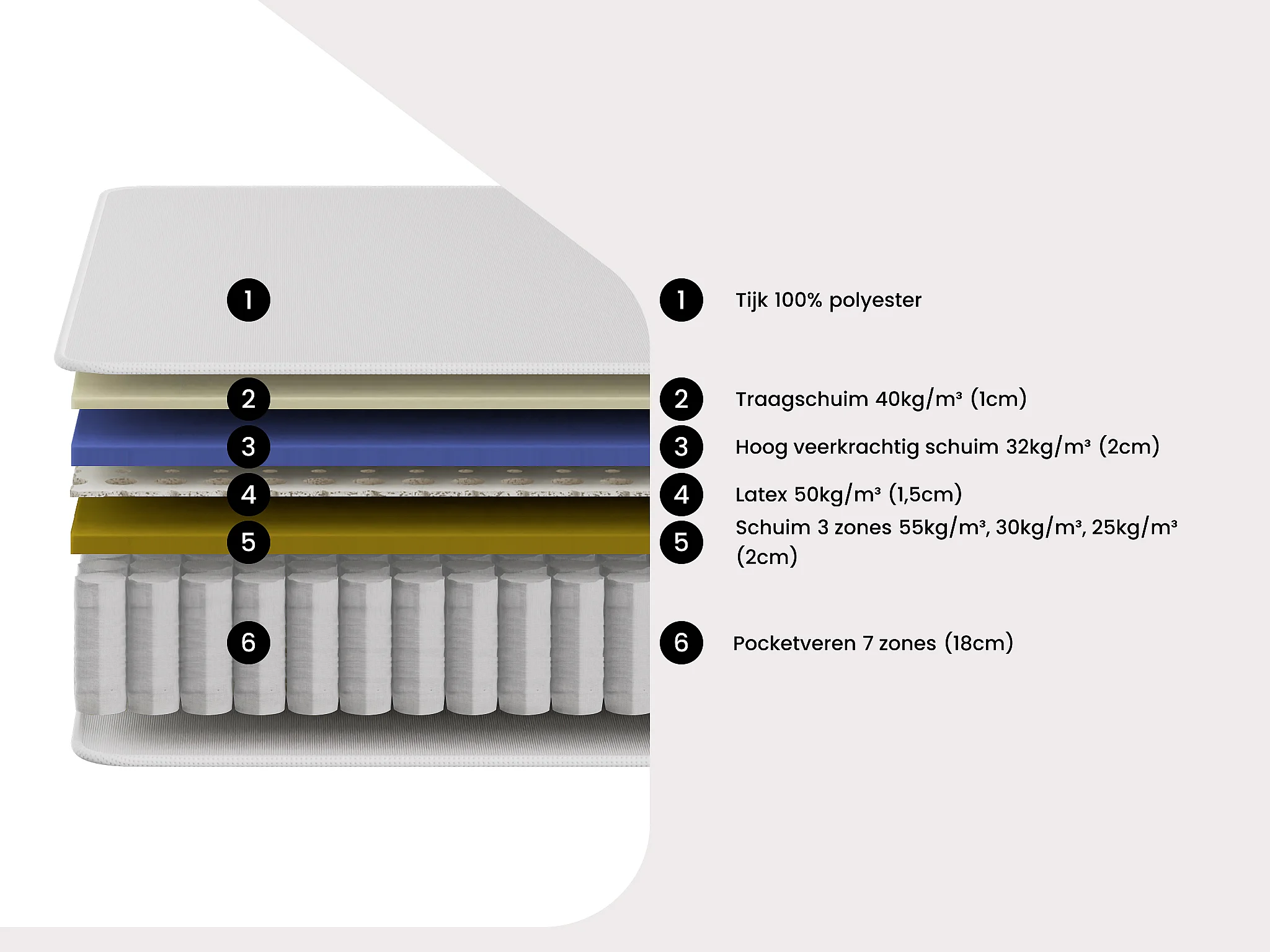 Boxspring van stof 160 x 200 cm + hybride matras met 7 zones pocketveren, traagschuim en latex, dikte 25 cm - MALAO van PALACIO