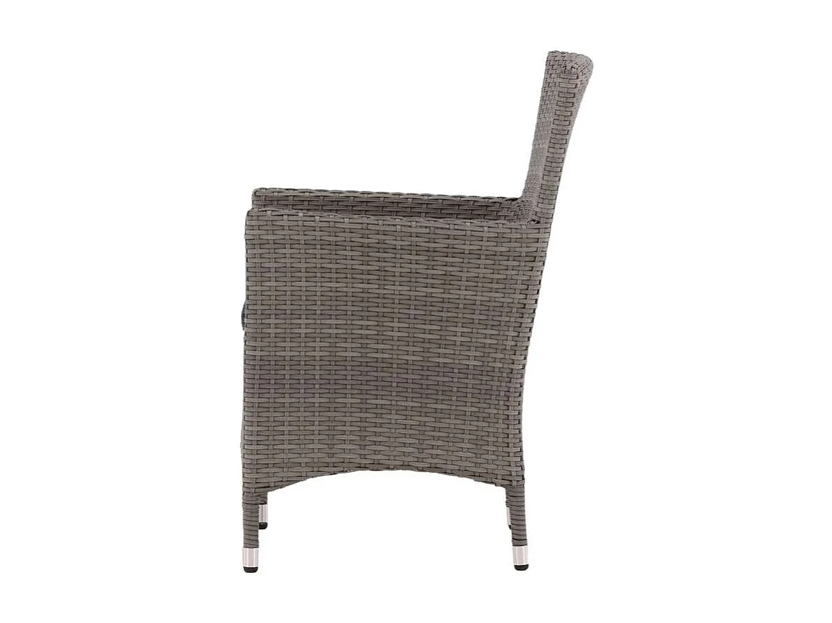 Malin tuinstoel met armleuningen incl. kussen, stapelbaar grijs.