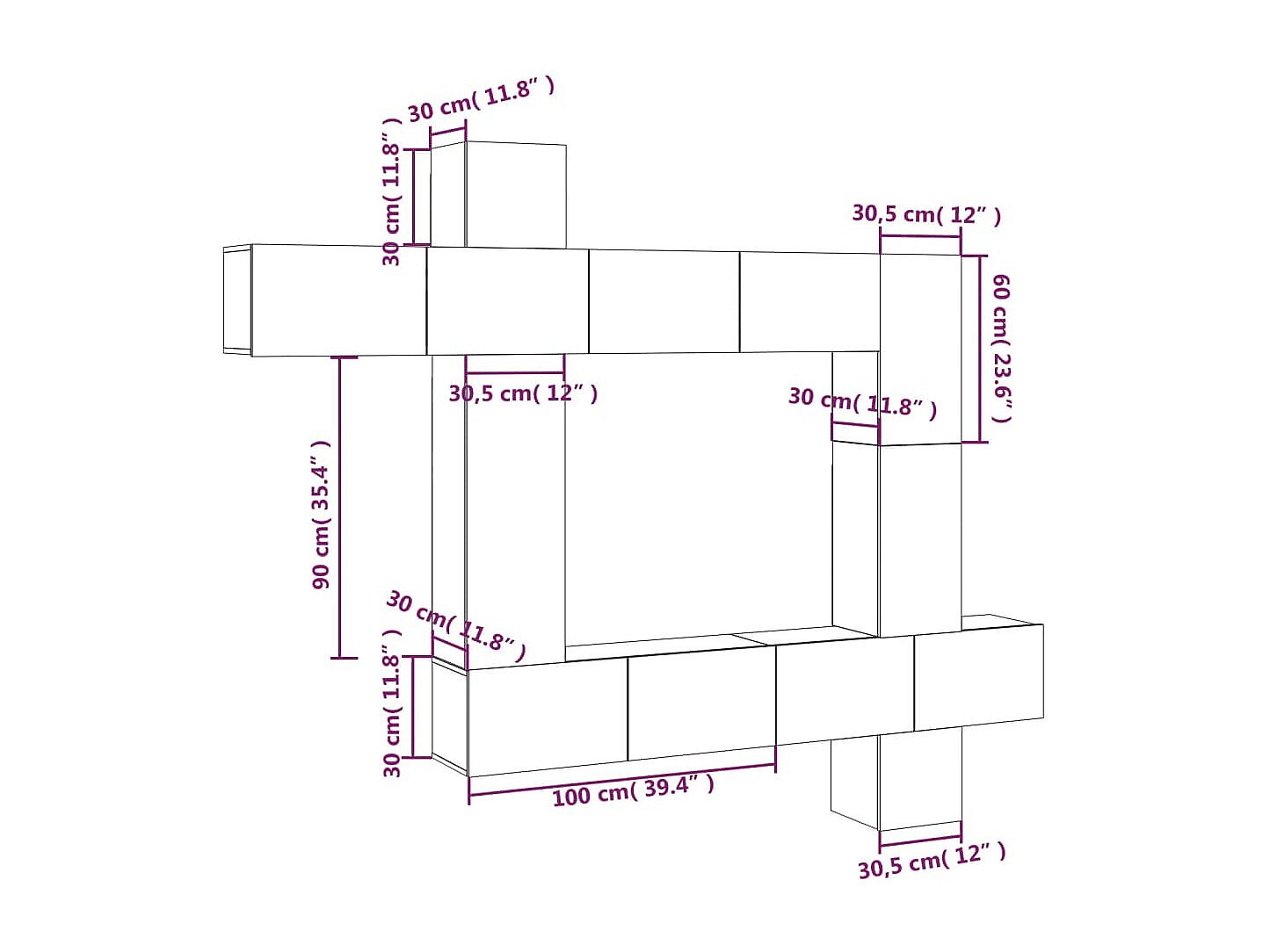 Manal 9-delige Tv-meubelset bewerkt hout wit