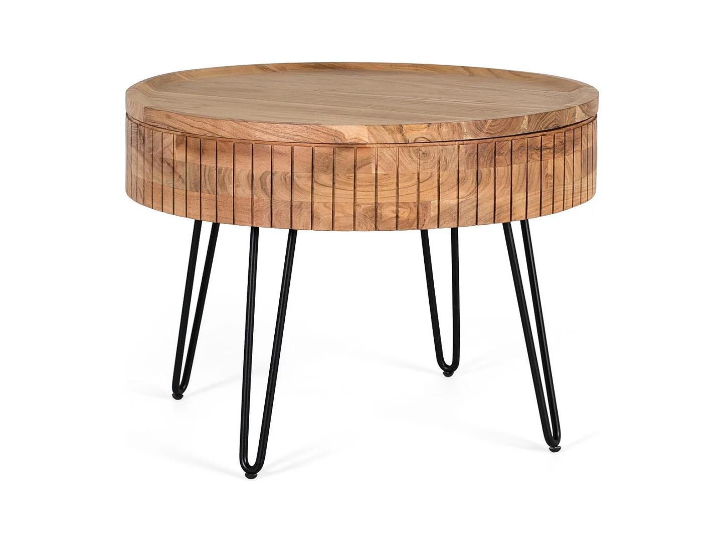 Mangohouten salontafel met ijzeren onderstel, handgemaakt