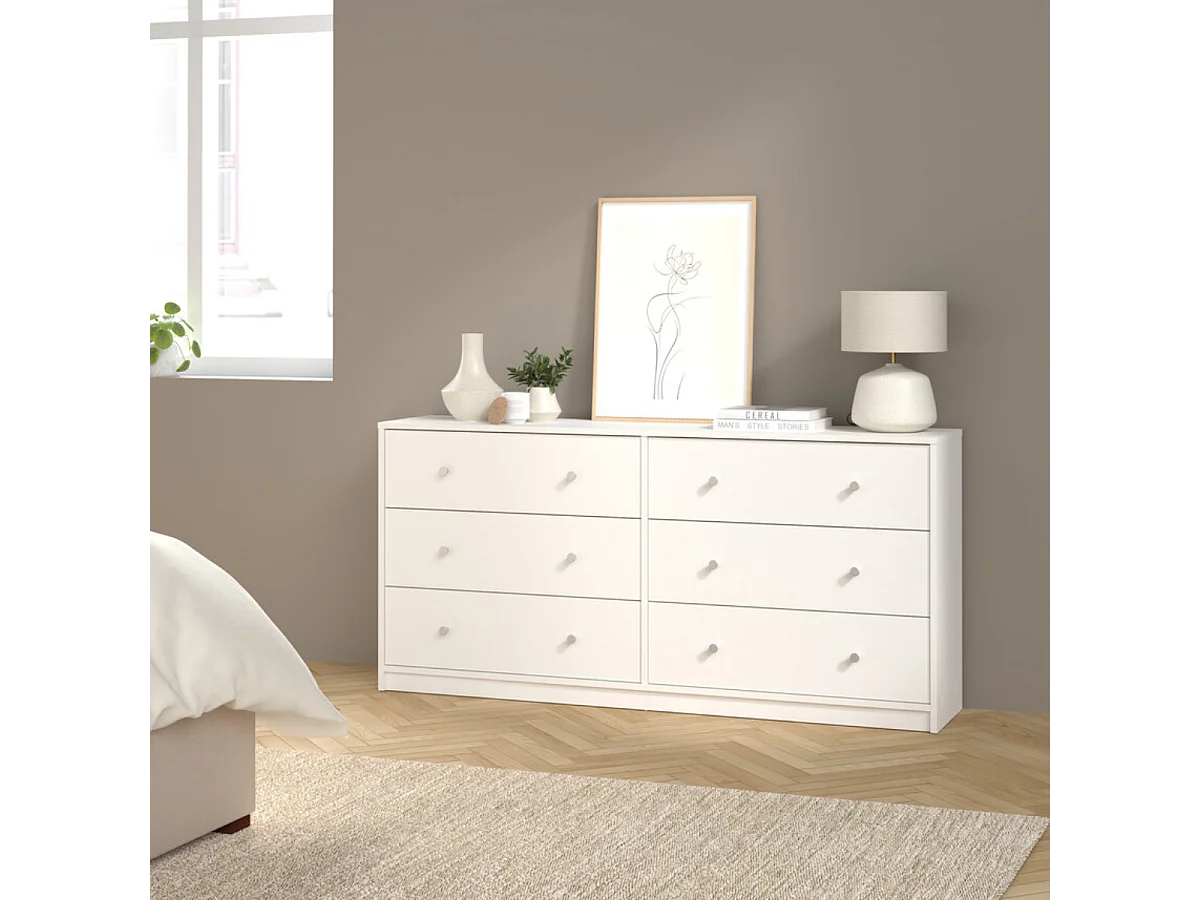 Maria kommode breed met 6 lades, wit.