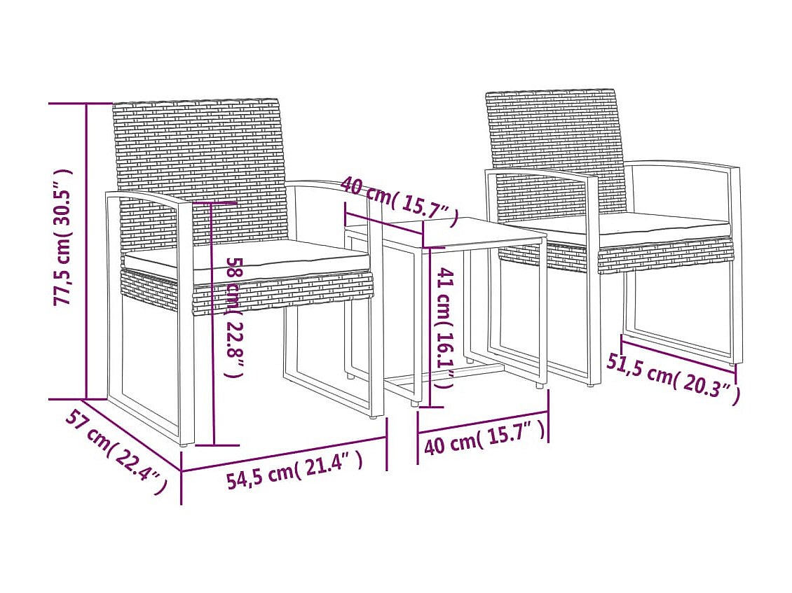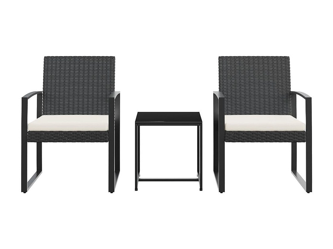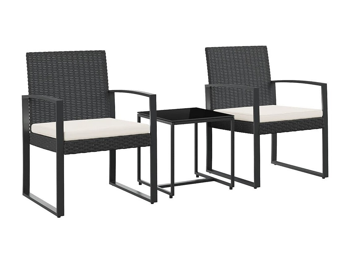 Marie-Philomène 3-delige Tuinset met kussens polypropeen rattan zwart