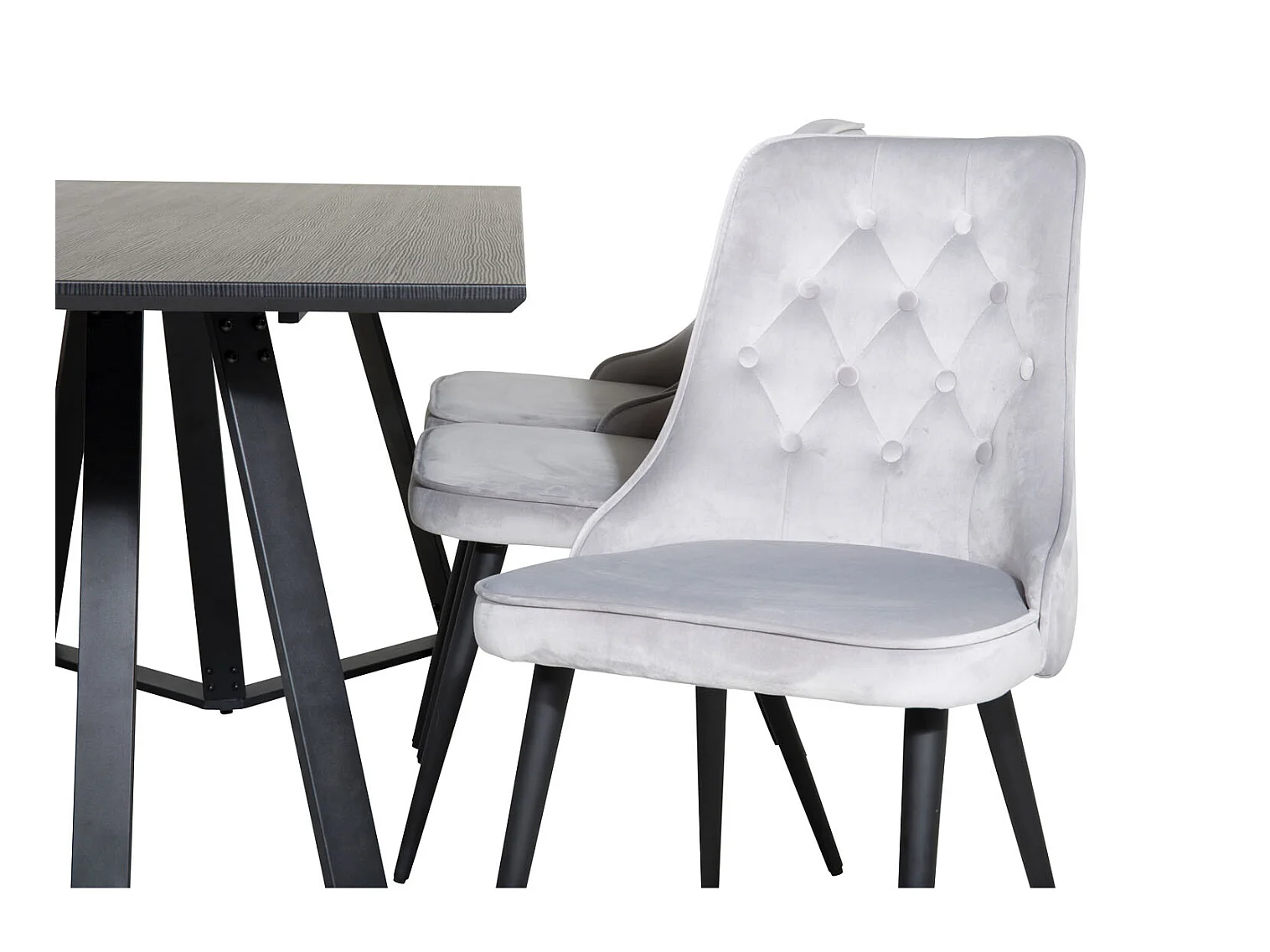 MarinaBLBL eethoek eetkamertafel zwart en 6 Velvet Deluxe eetkamerstal velours lichtgrijs.