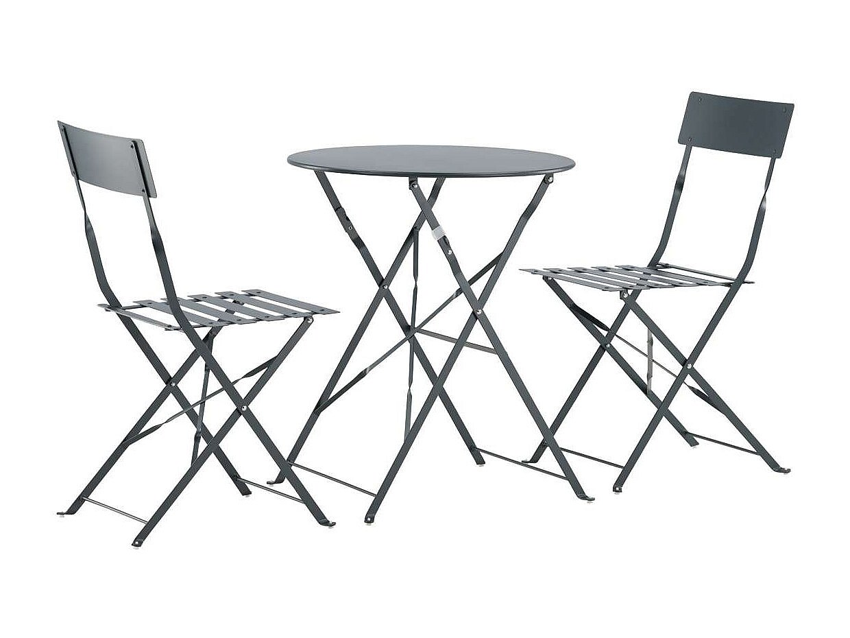 Marseille tuinmeubelset tafel, 2 stoelen donkergrijs.