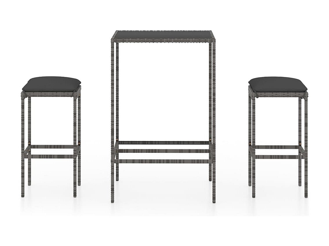 Mary 3-delige Tuinbarset met kussens poly rattan grijs