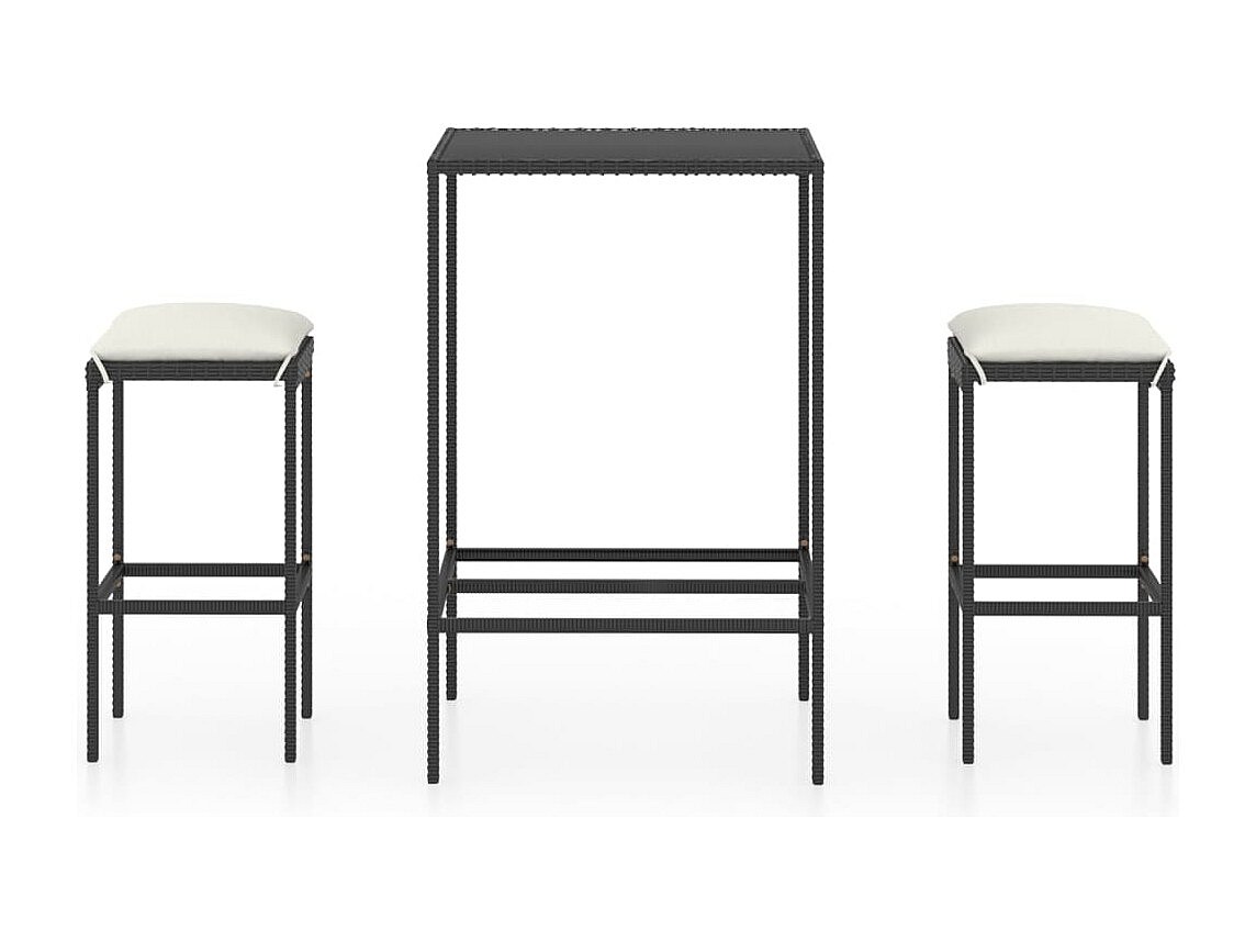 Mary 3-delige Tuinbarset met kussens poly rattan zwart