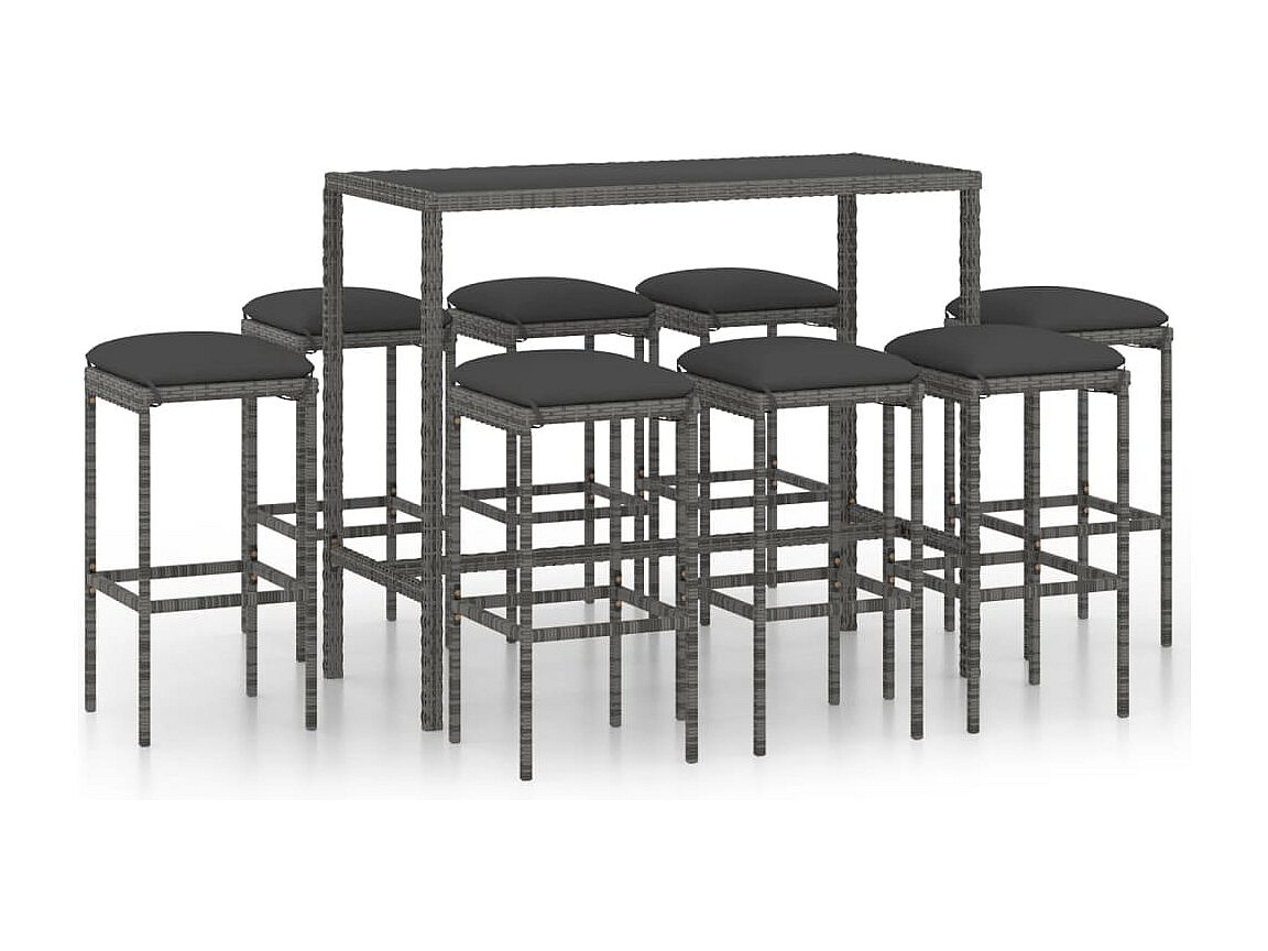 Grylin 9-delige Tuinbarset met kussens poly rattan grijs
