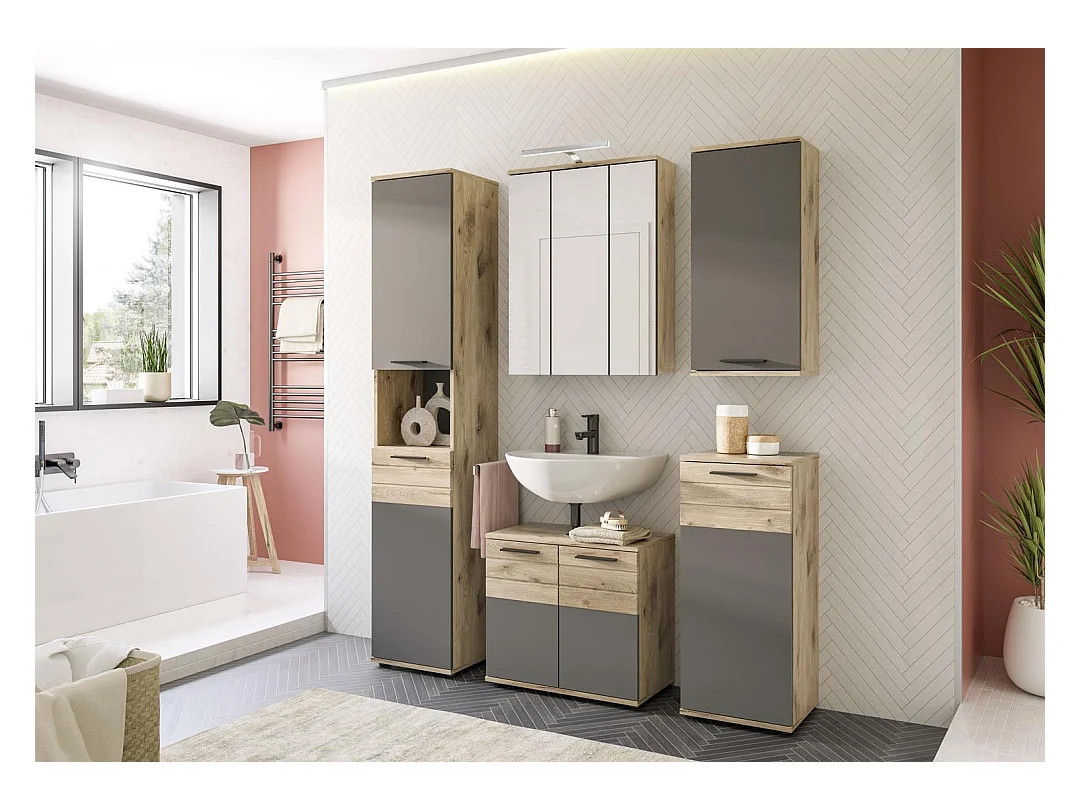 Klein badkamermeubel met spiegel - Grijs - L50 x H55 cm - MOLLY