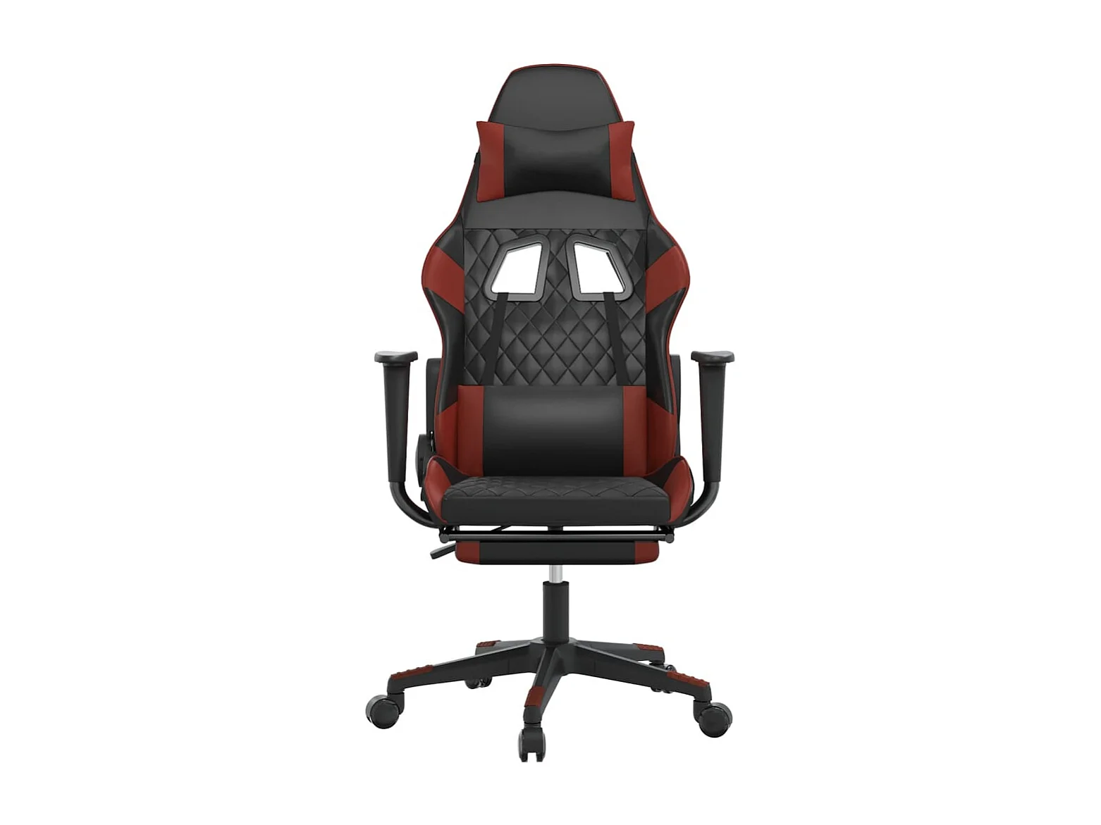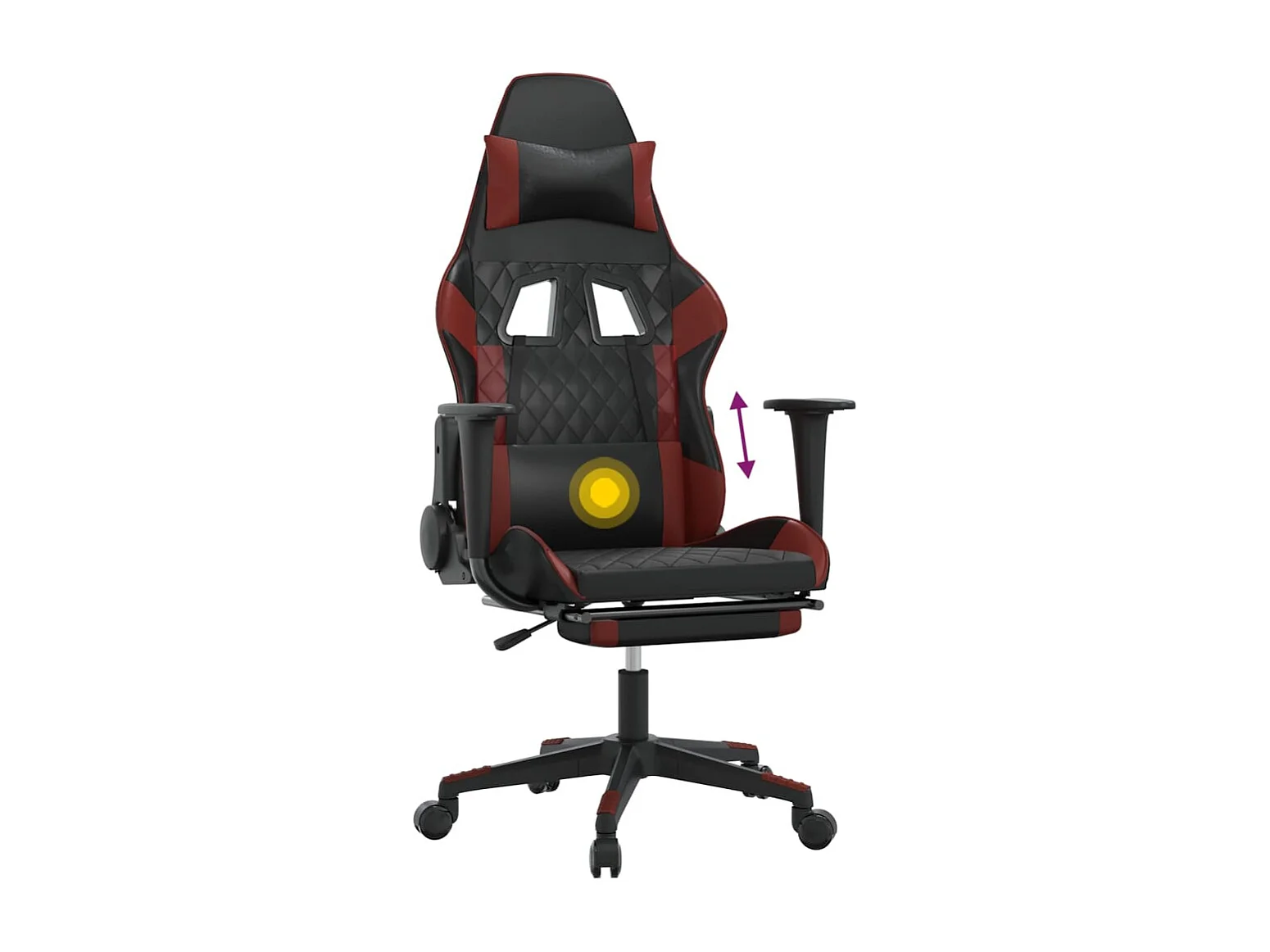 Massage gamestoel met voetensteun kunstleer zwart en wijnrood