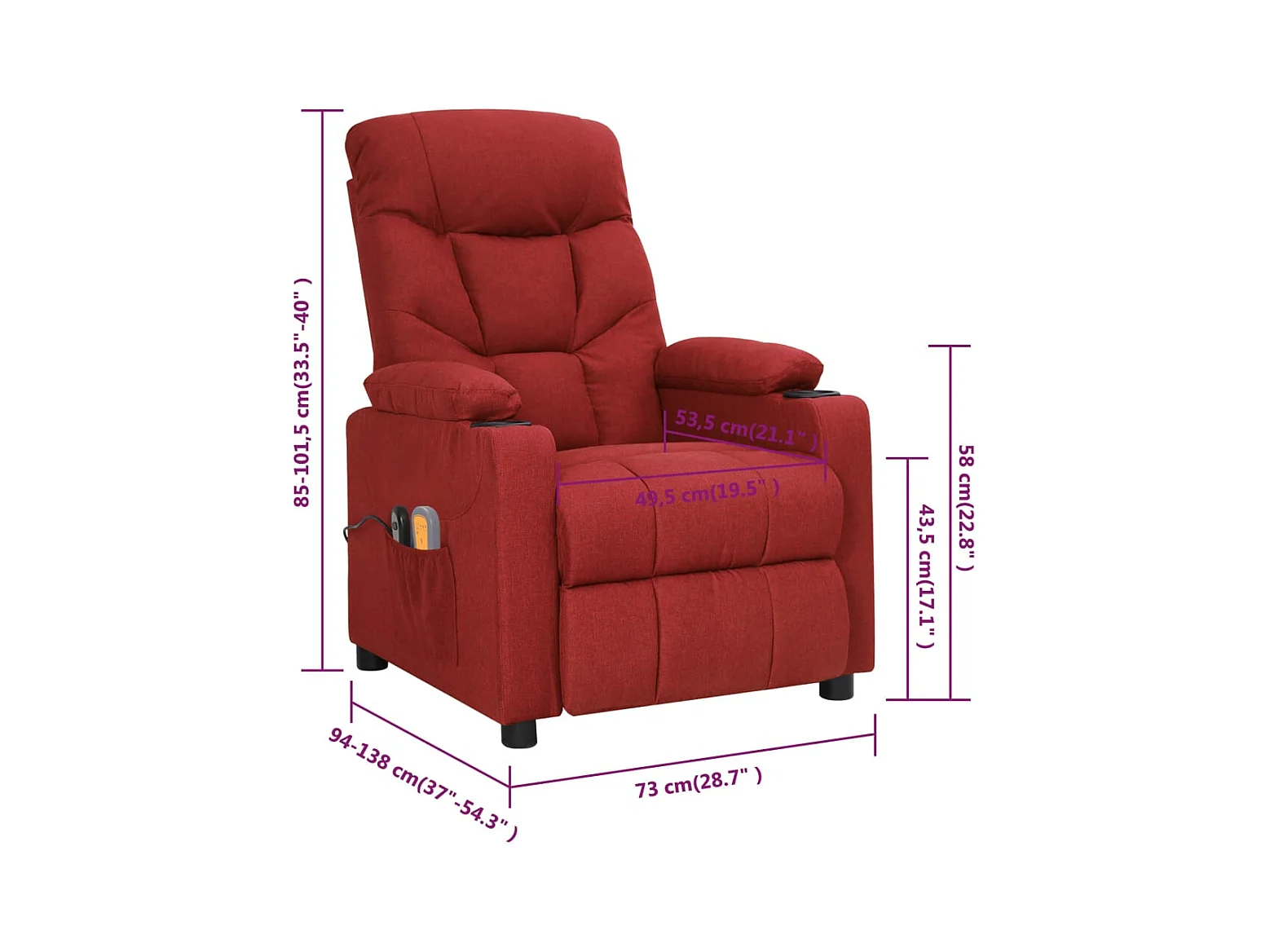 Massagestoel elektrisch verstelbaar stof wijnrood
