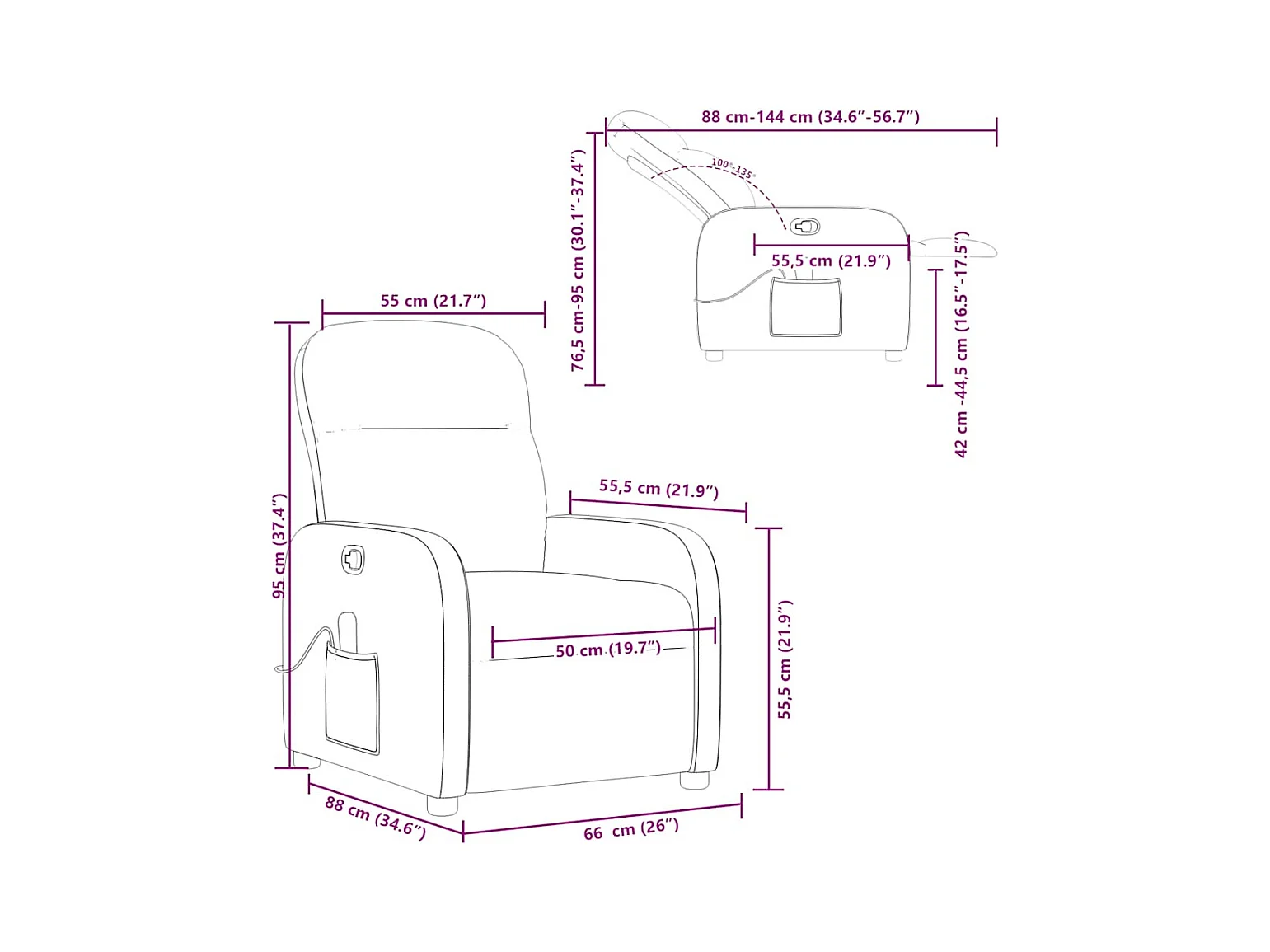 Relaxfauteuilleer met met handmatig relaxmechanisme zwart