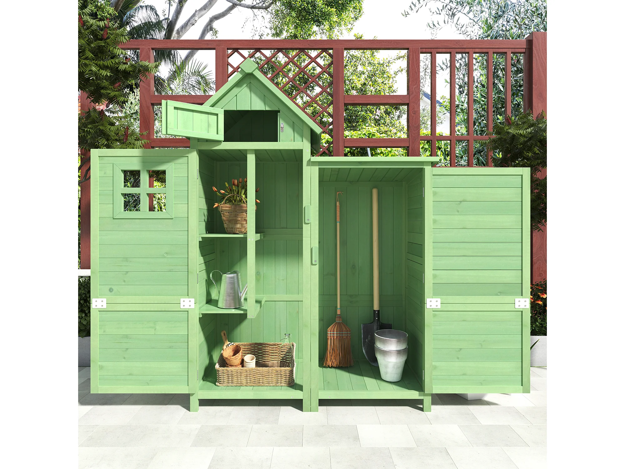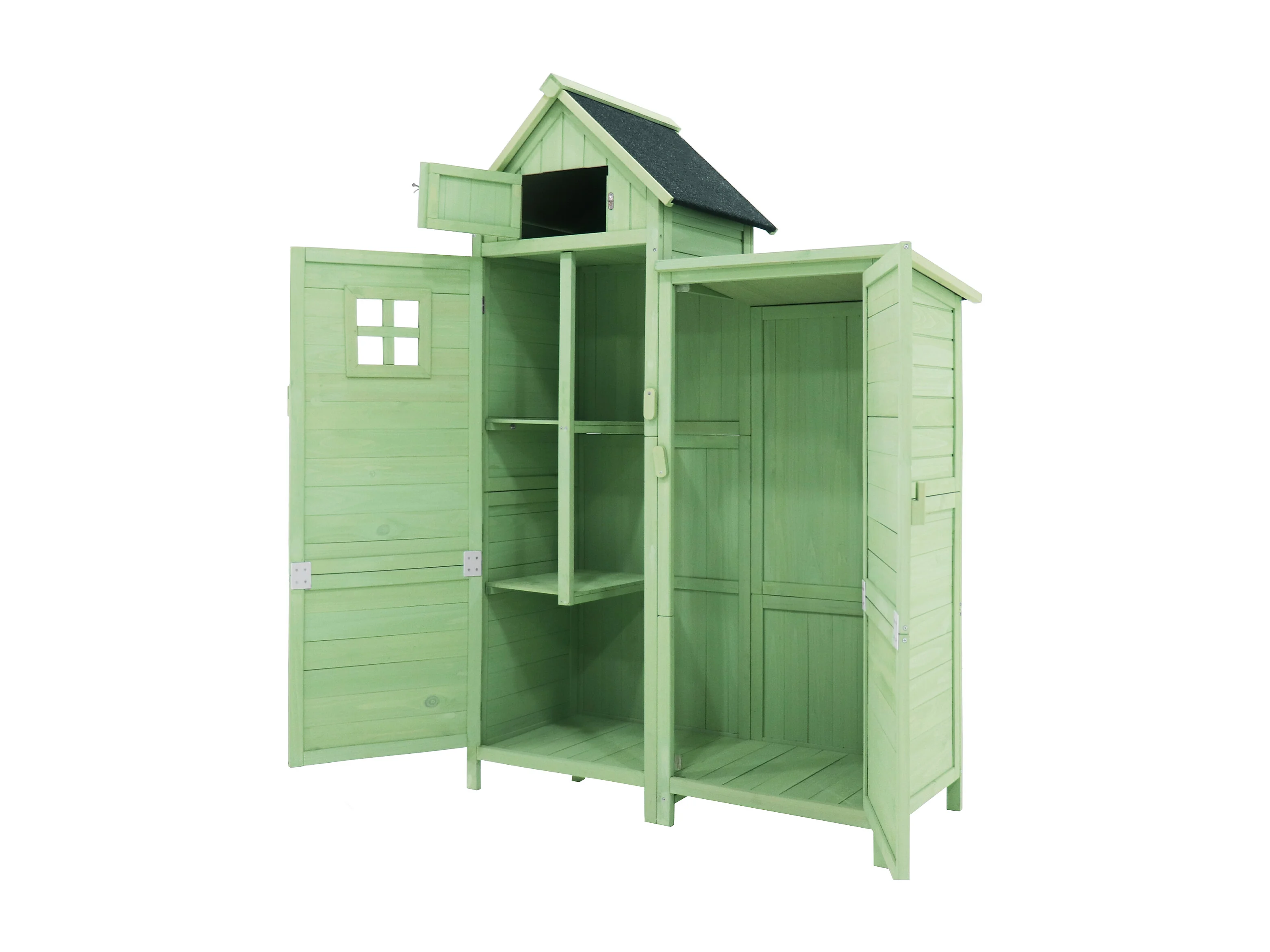 Massief houten tuinhuis met PVC schuin dak - 2 planken 3 klapdeuren - L118 x D54 x H173 cm - Groen