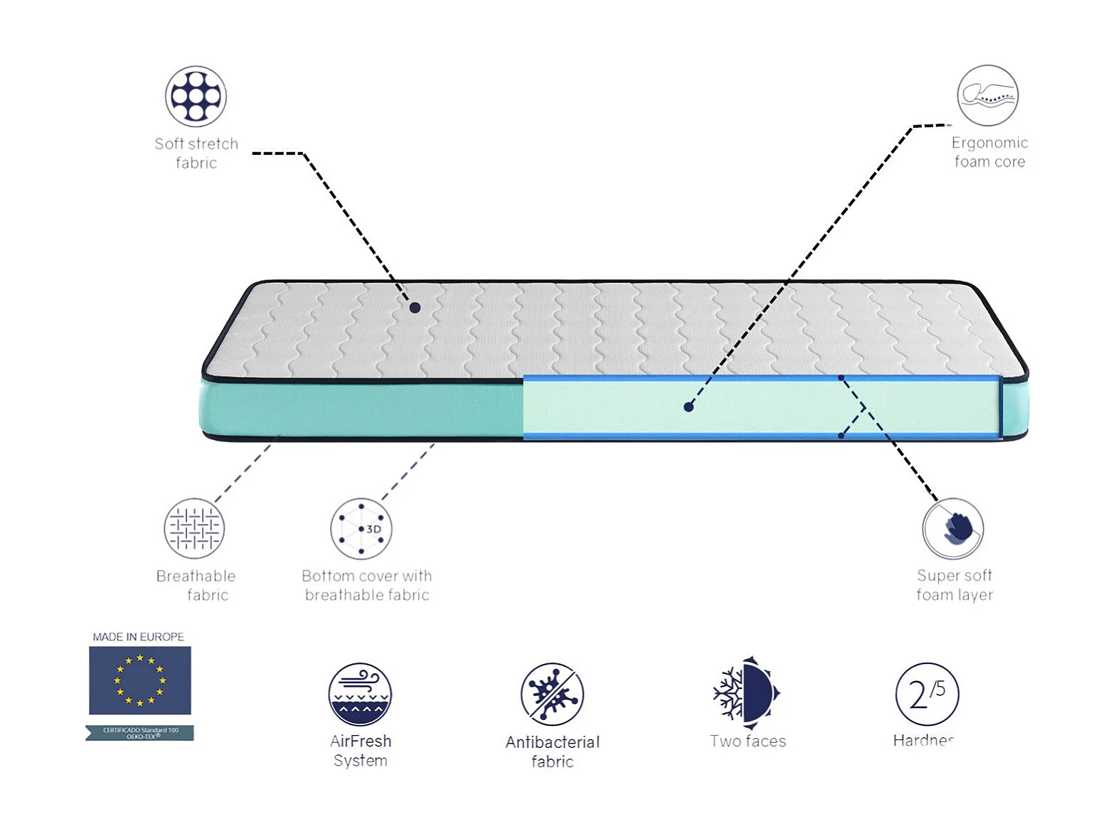 Uitneembaar matras 140x180 ELBA, Hoogte 22 CM, Aanpasbaar schuim, Ergonomisch. Uitgebalanceerde stevigheid