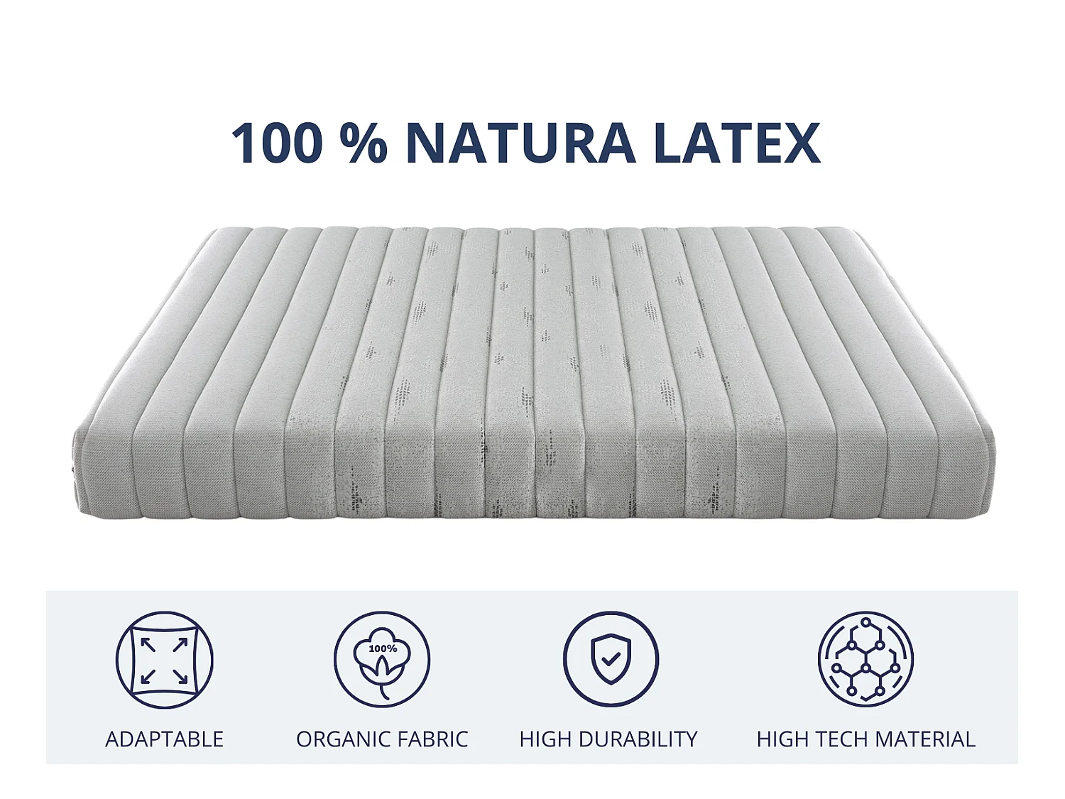 Matras 150x200 cm - 100% natuurlatex | Hoogte 20 cm | Medium stevigheid (3/5) | Ecologische kern met katoen & linnen overtrek