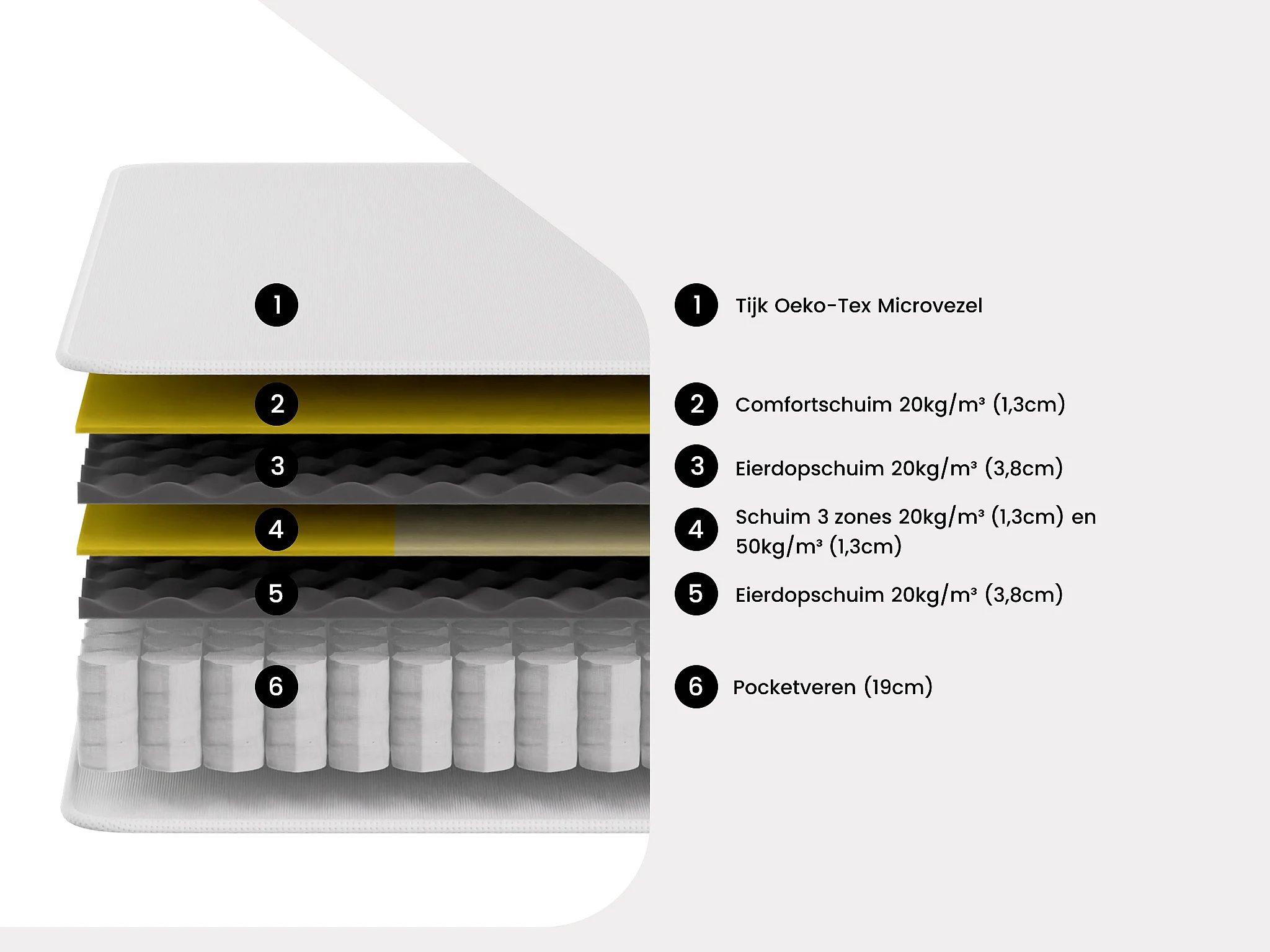 • Kern van alveolaire schuimvulling en schuim met 3 comfortzones