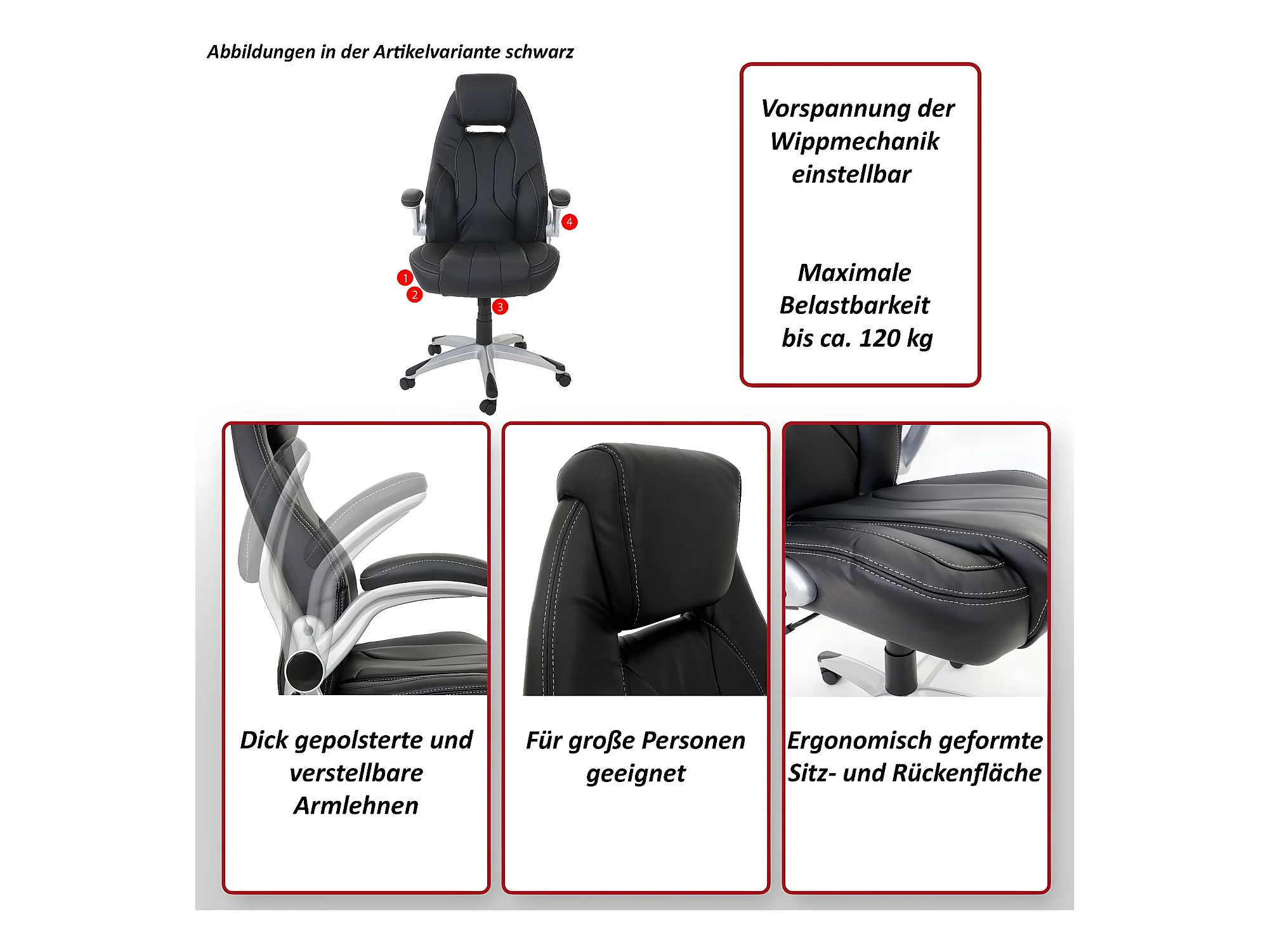 Bureaustoel met relaxfunctie, in hoogte verstelbaar Hoogte, voetensteun, gewatteerd