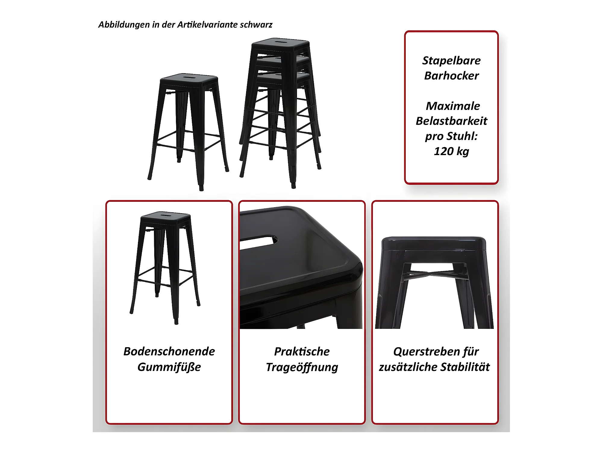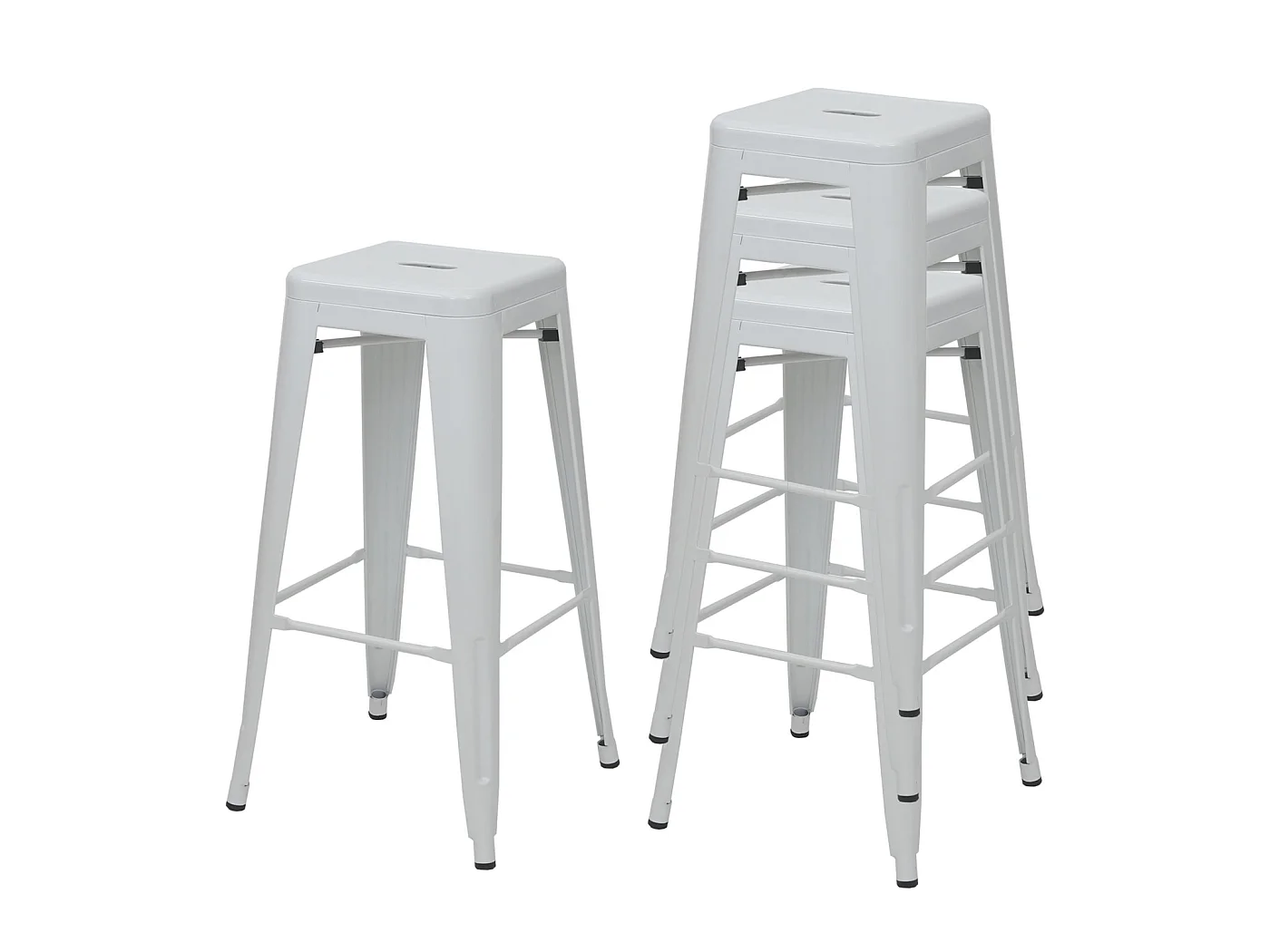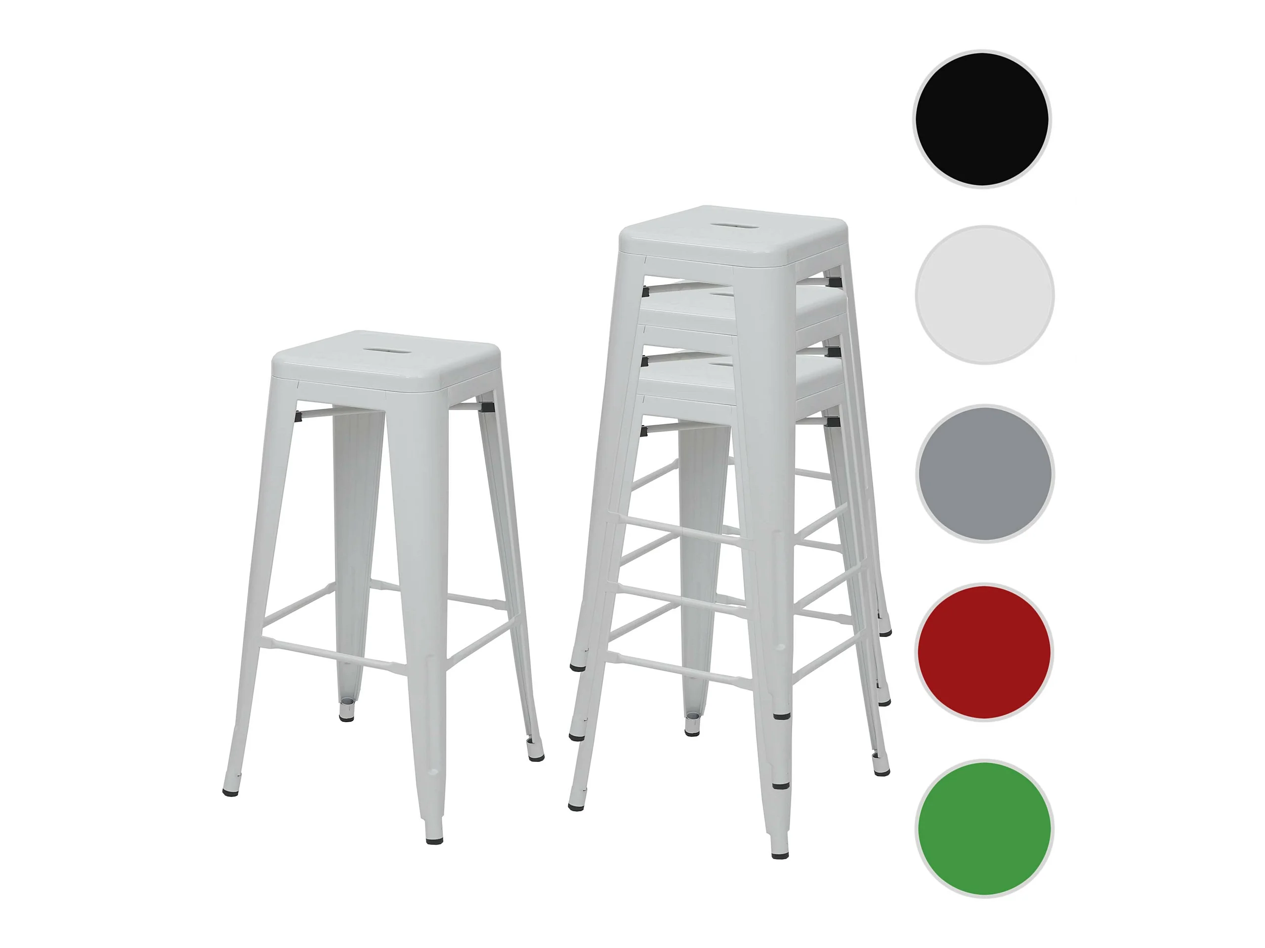 Set van 4 vintage stijl metalen barkrukken, mat wit - Collectie LIVE