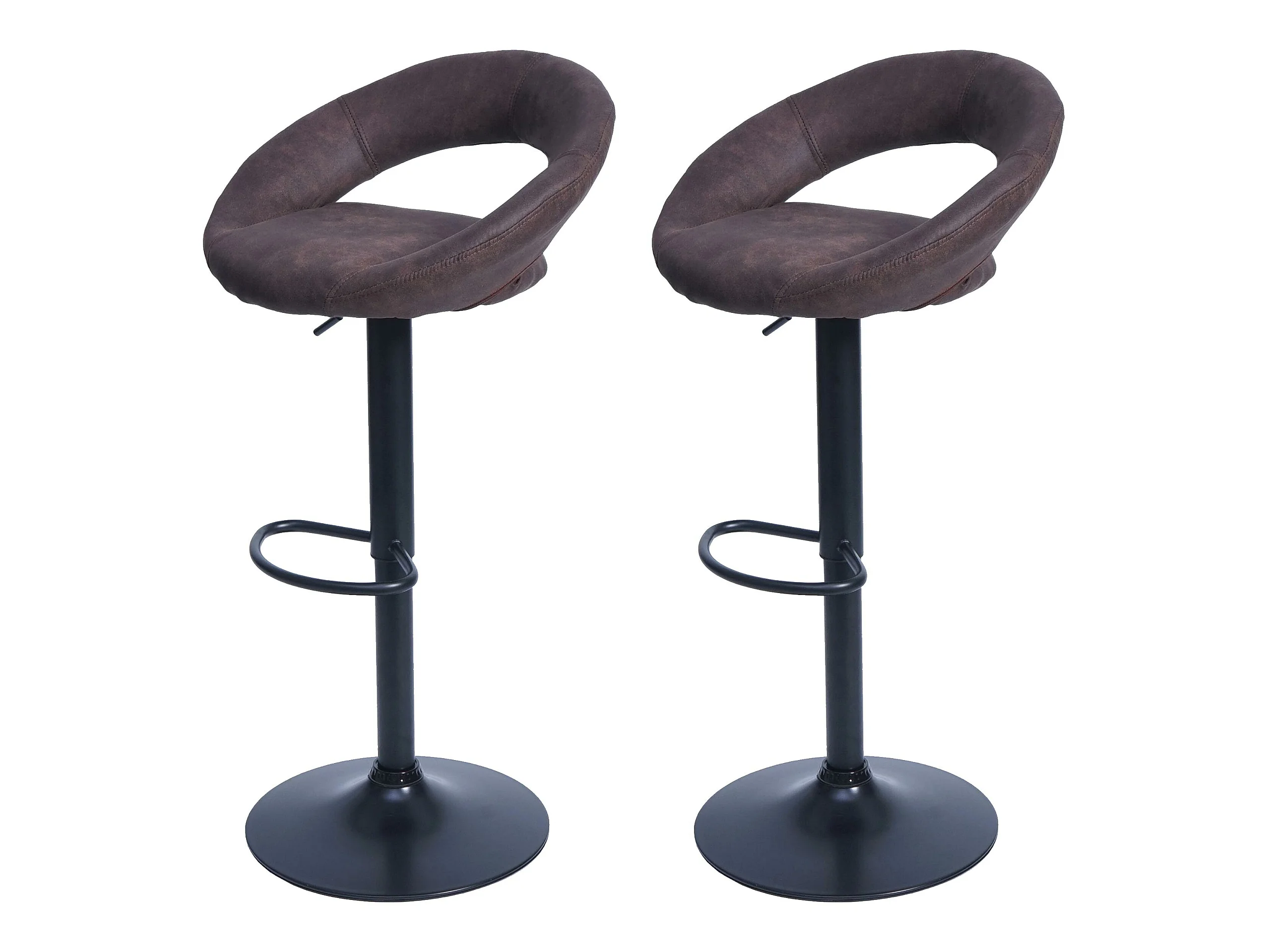 Barkruk MCW-F46 (set van 2), imitatie suède, vintage donkerbruin