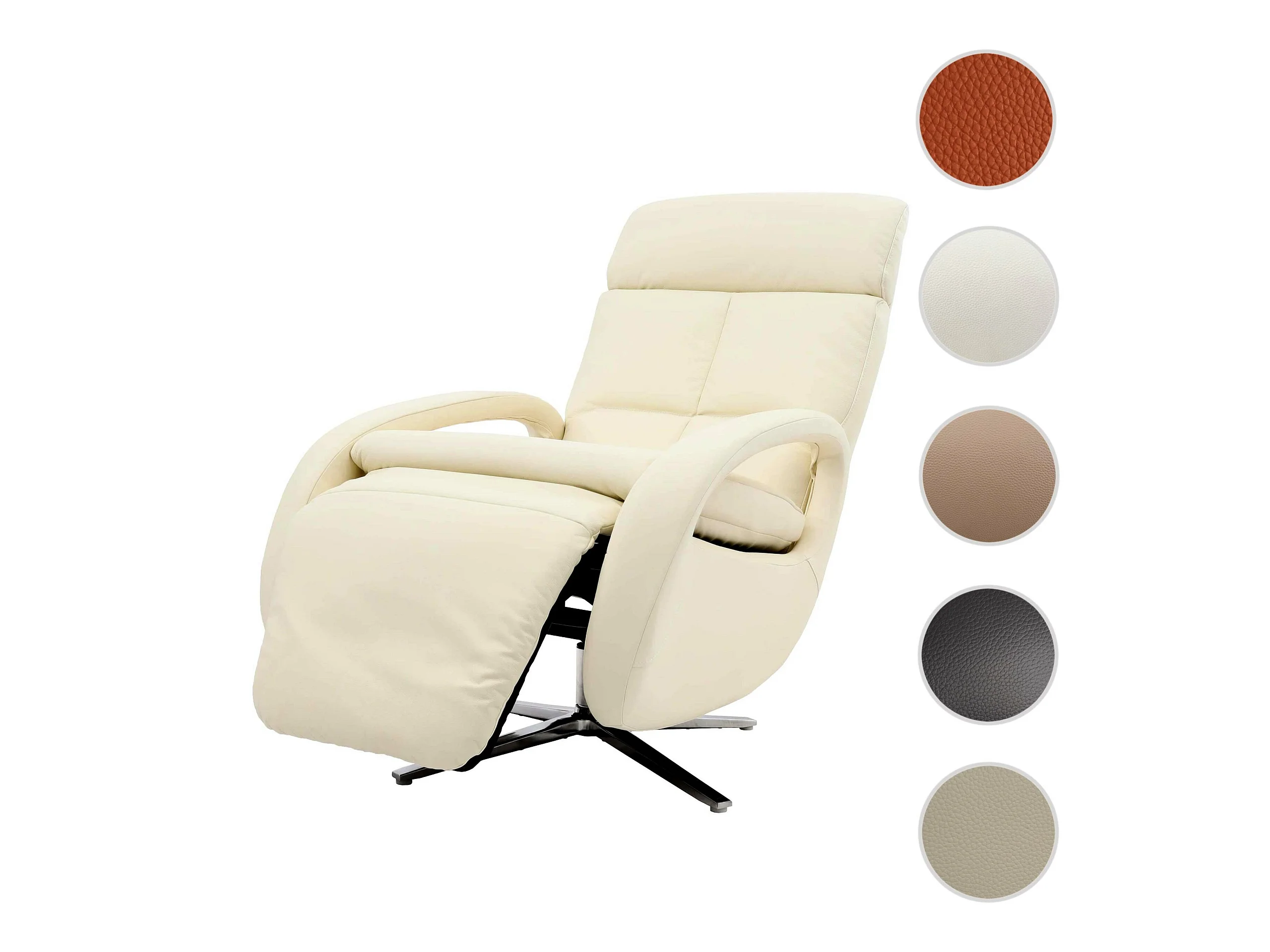 Relaxfauteuil MCW-L11 draaibaar, volledig leer, crème-wit