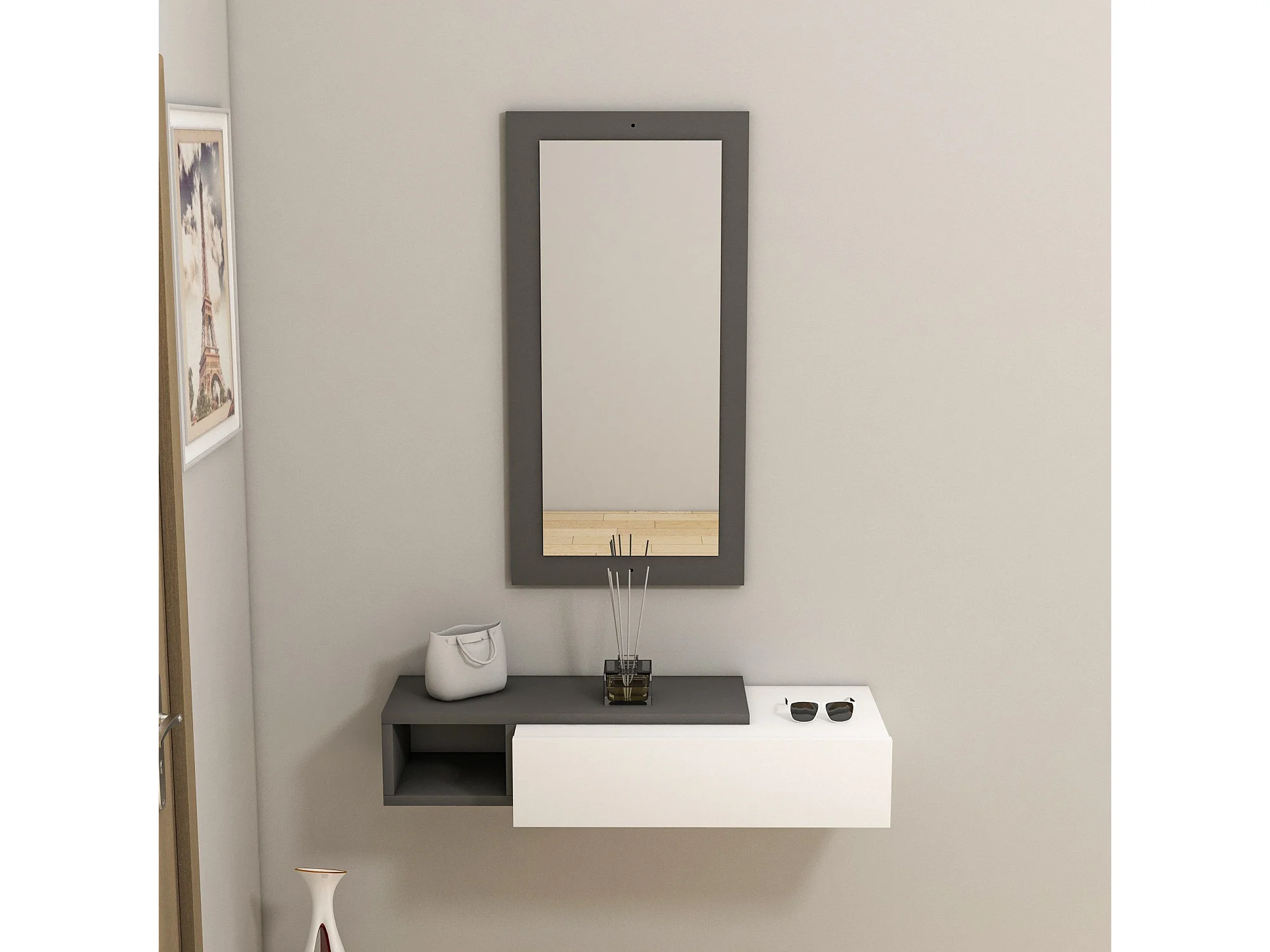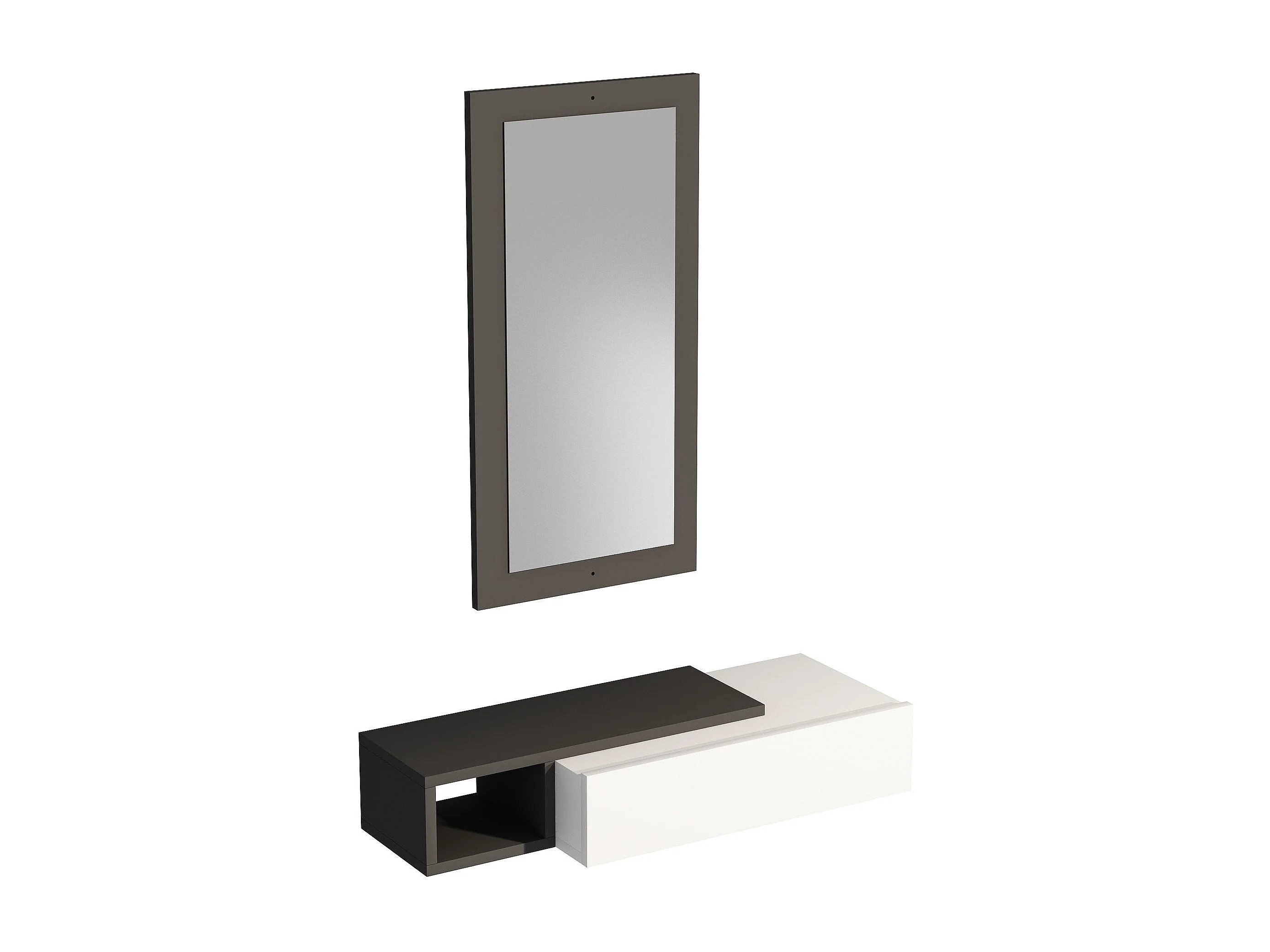 Melamine dressoir met spiegel – 82 x 15,8 x 29,6 cm – Antraciet en wit