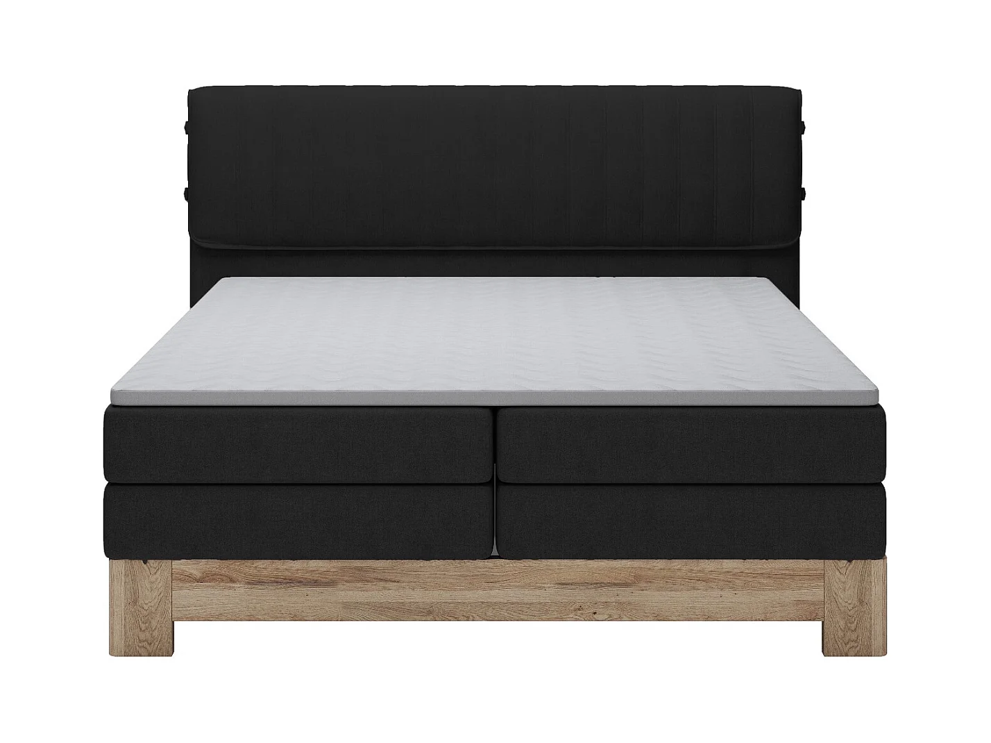 MELIA, Gestoffeerd bed met pocketveren, eiken frame, elastische matras, slaapoppervlak: 140x200 cm, zwart