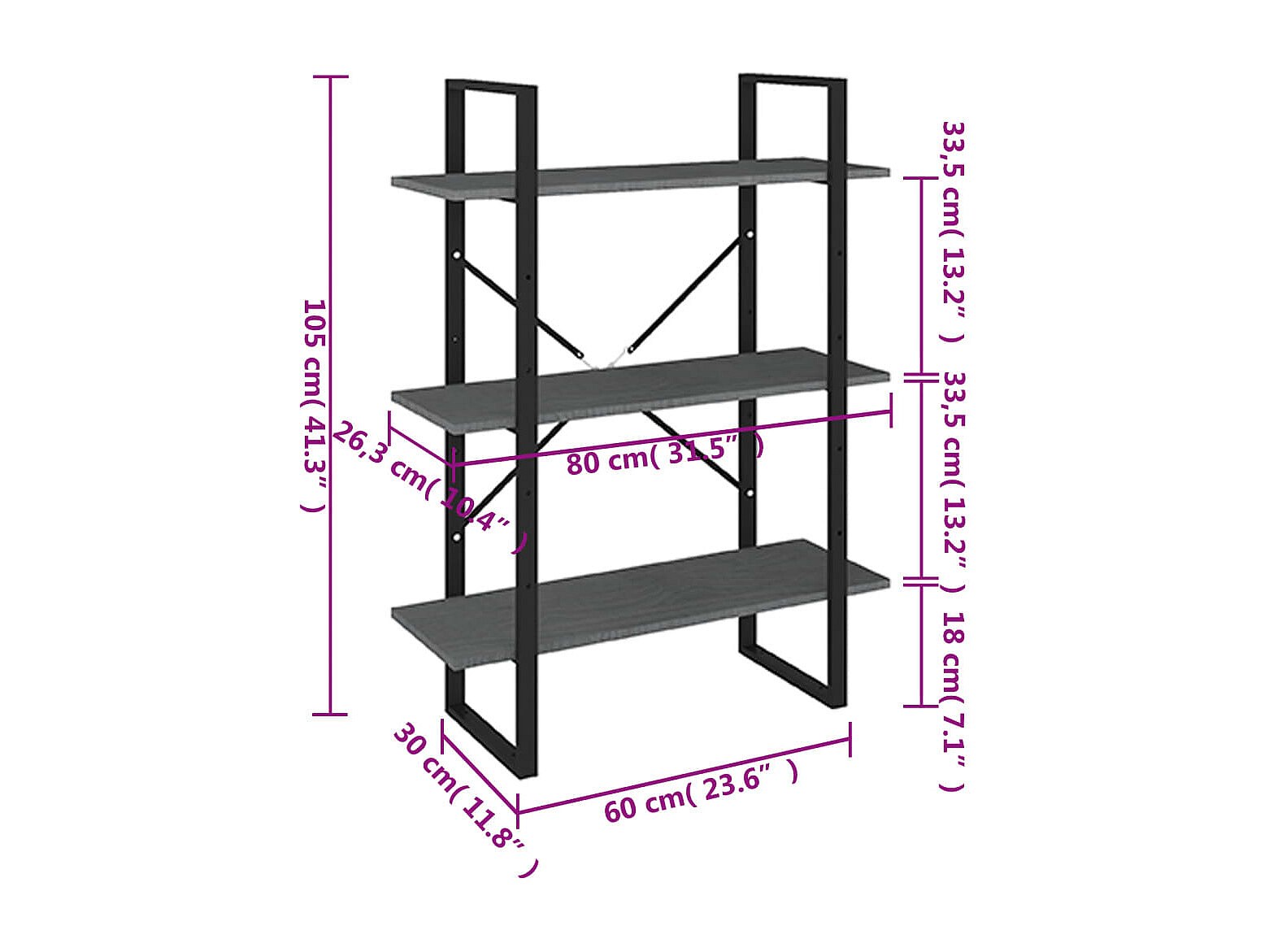 Drachten Boekenkast met 3 schappen 40x30x105 cm bewerkt hout grijs