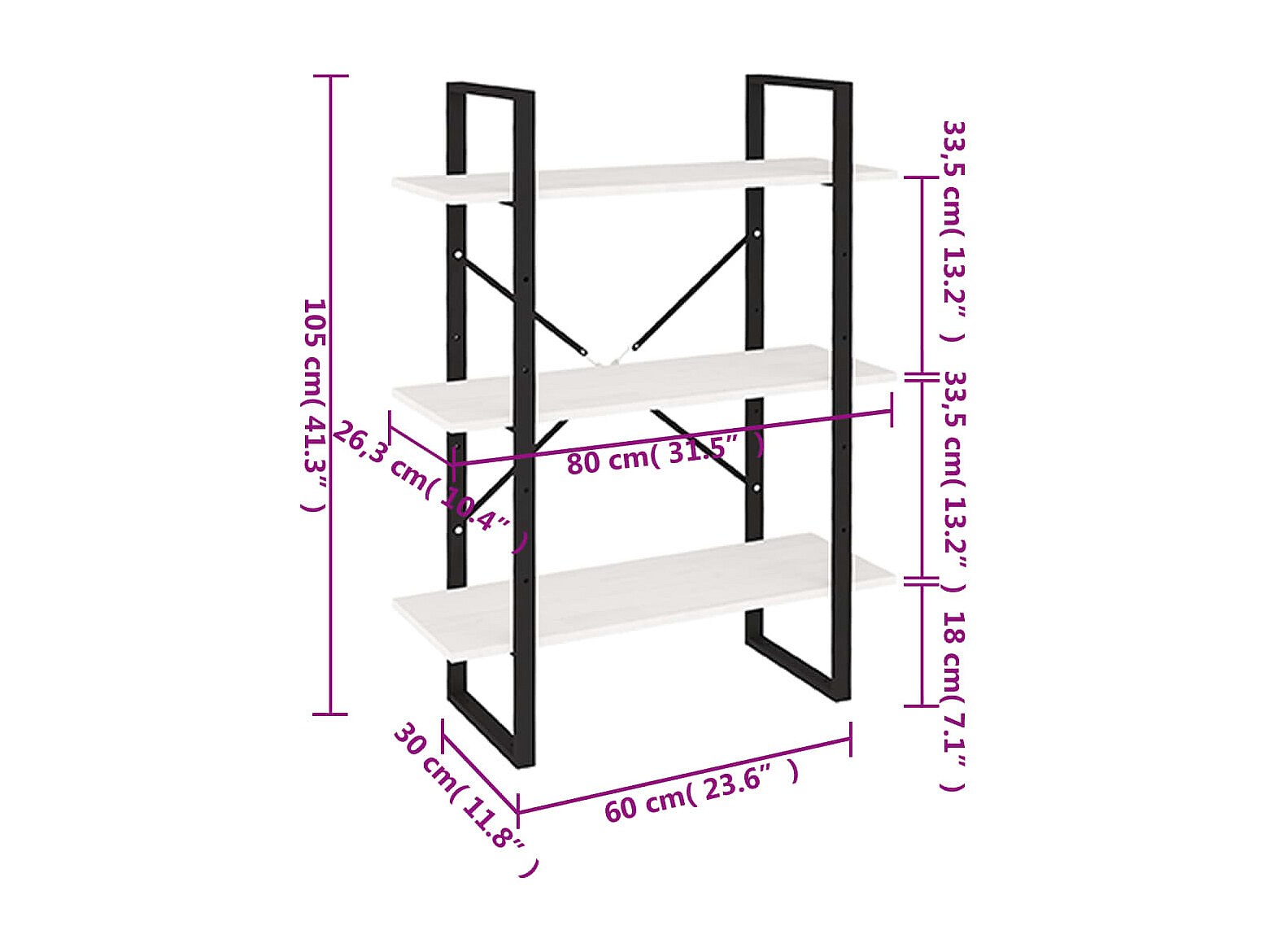 Melvin Dean Boekenkast met 3 schappen 80x30x105 cm massief grenenhout wit