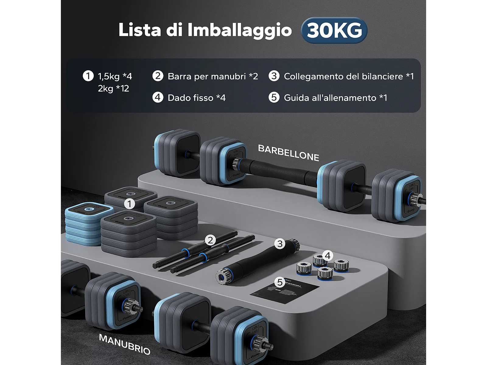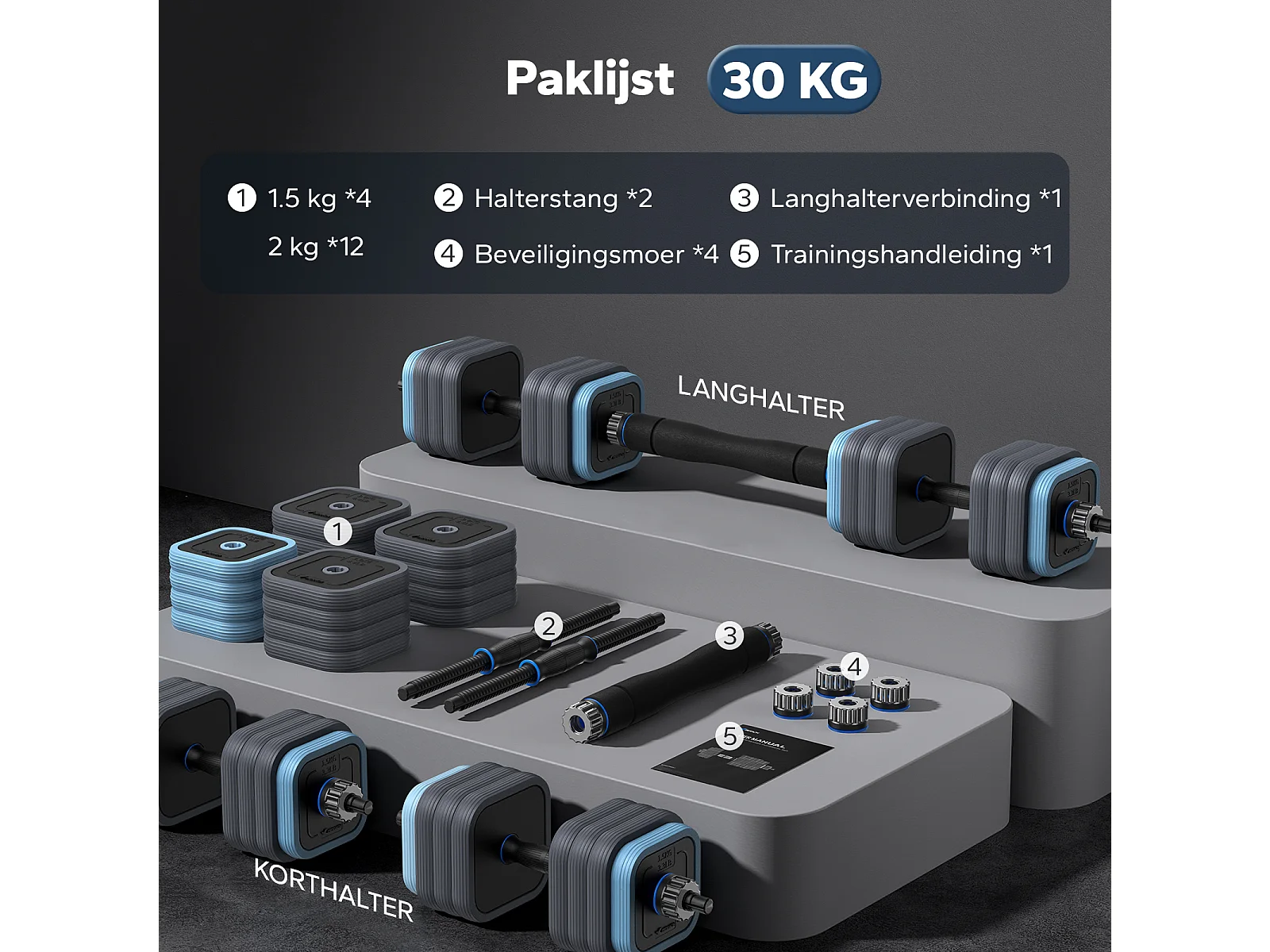 MERACH Dumbbells - 3 in 1 Hantelset - Verstelbare Gewichten - 30KG - Robuuste Grip - Voor Thuisfitness - Krachttraining - Robuust & Compact - Voor Mannen & Vrouwen