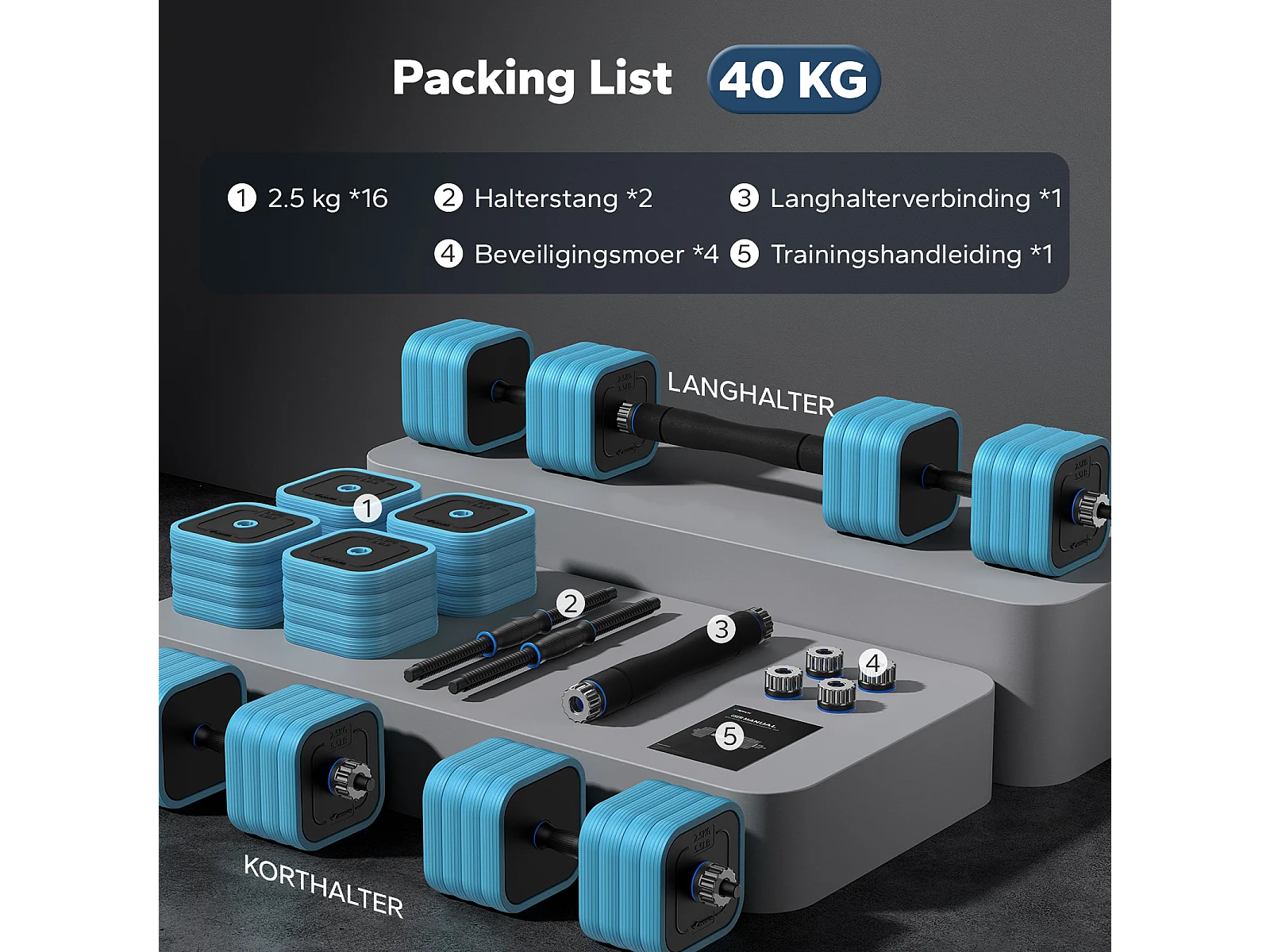 MERACH Dumbbells - 3 in 1 Hantelset - Verstelbare Gewichten - 40KG - Robuuste Grip - Voor Thuisfitness - Krachttraining - Robuust & Compact - Voor Mannen & Vrouwen