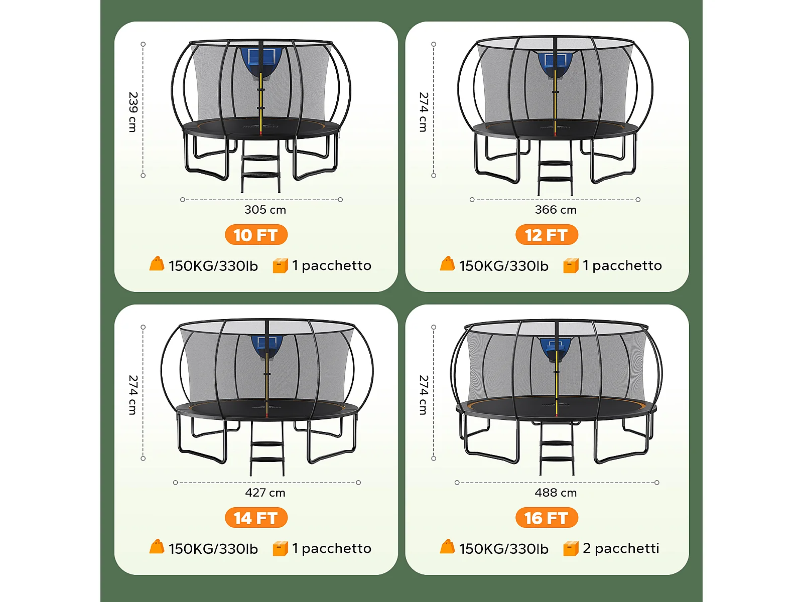MERACH Outdoor Trampoline Ø305cm – Met Veiligheidsnet & Basketbalring – Krachtige Vering met Elastiek – Voor Kinderen & Volwassenen – Max150 kg