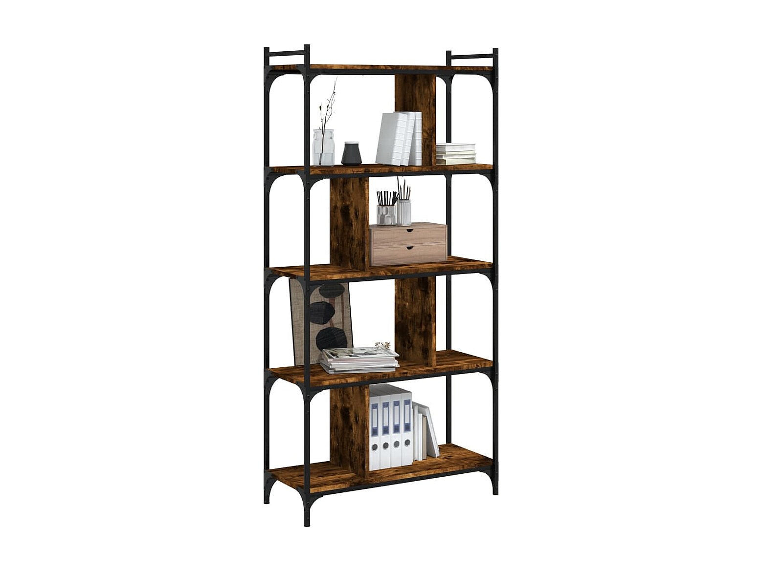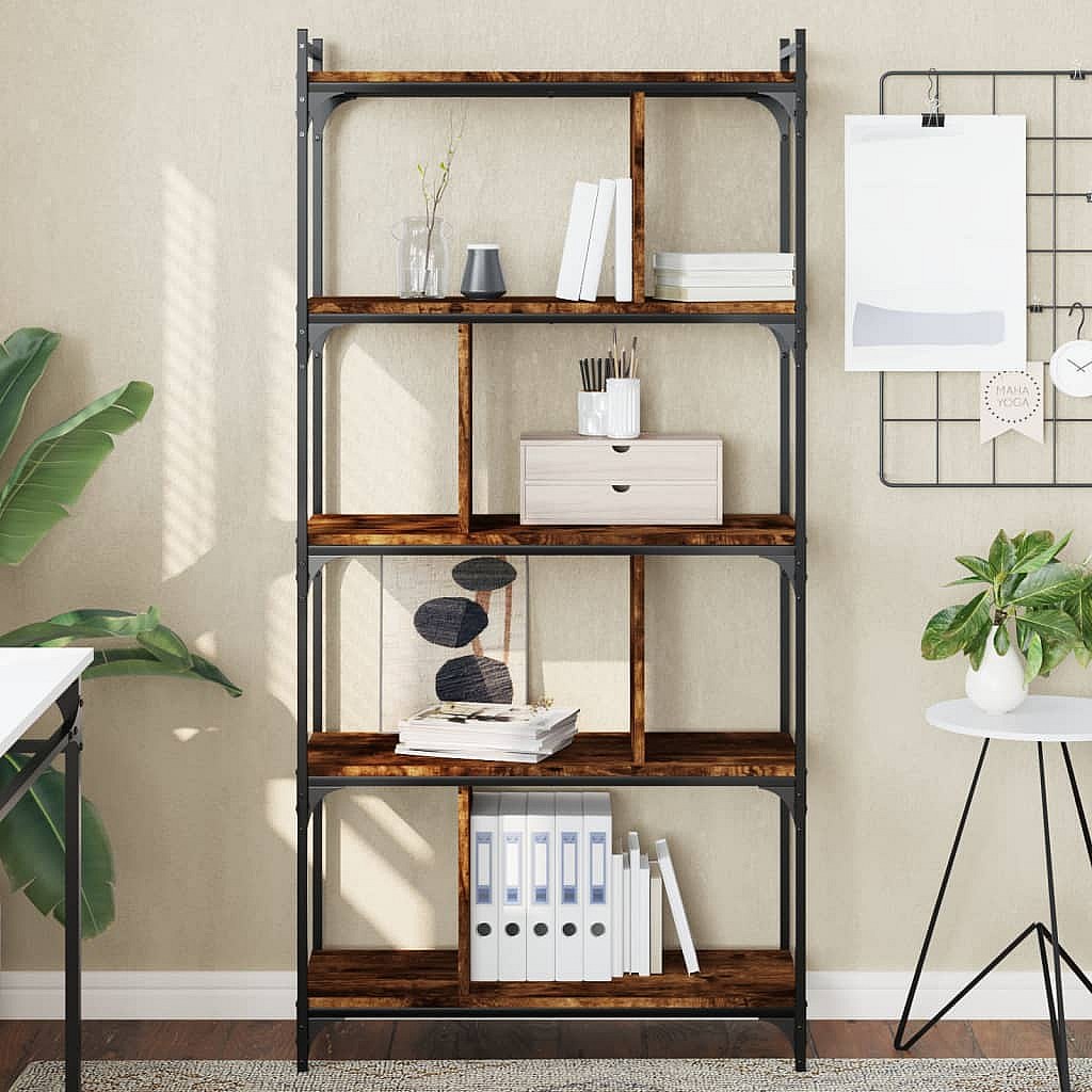 Merse Boekenkast 5-laags 76x32x158 cm bewerkt hout gerookt eikenkleur