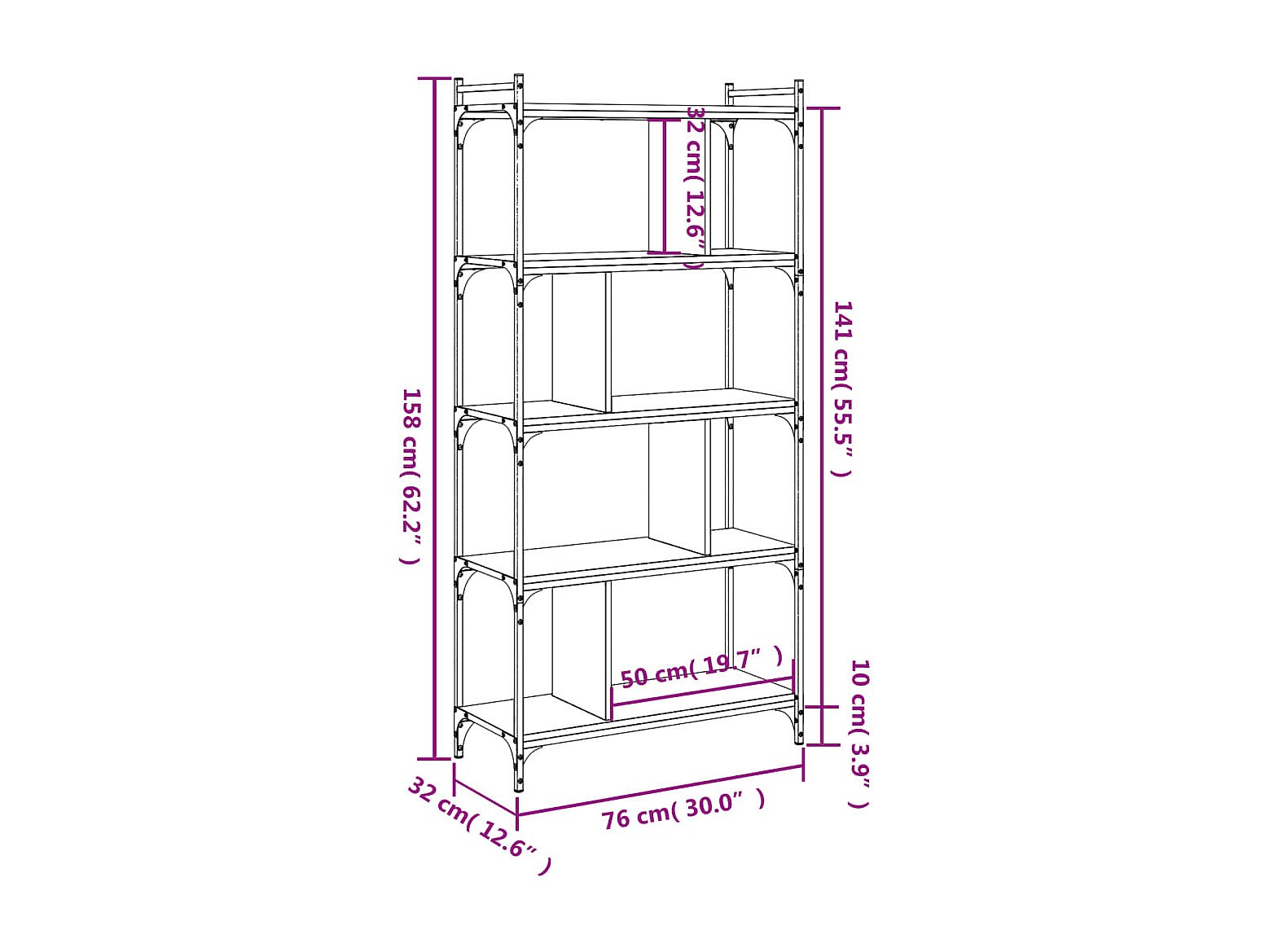 • Afmetingen: 76 x 32 x 158 cm (L x B x H)