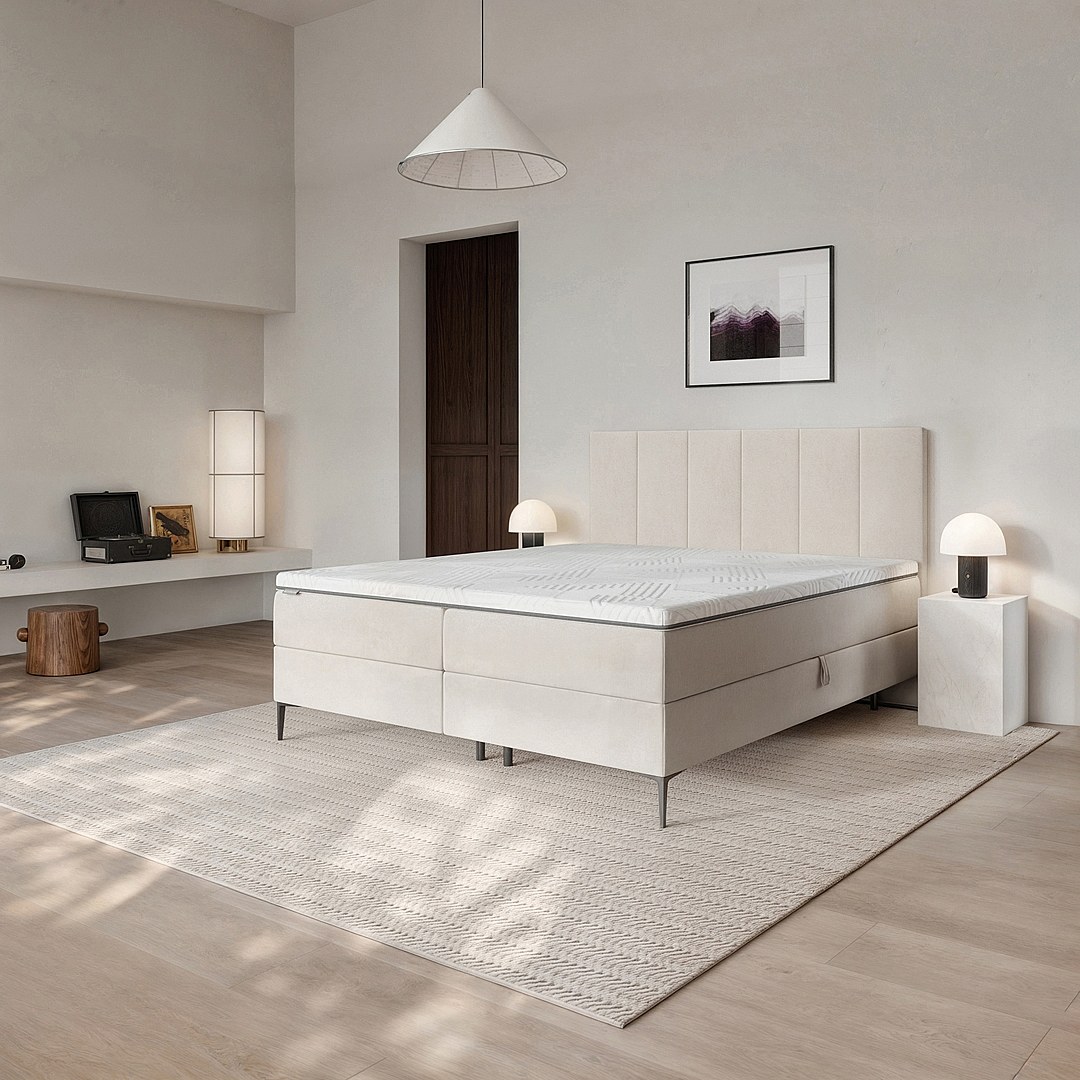 Continentaal bed - 160x200 cm - in beige fluwelen stof - SILENSIO