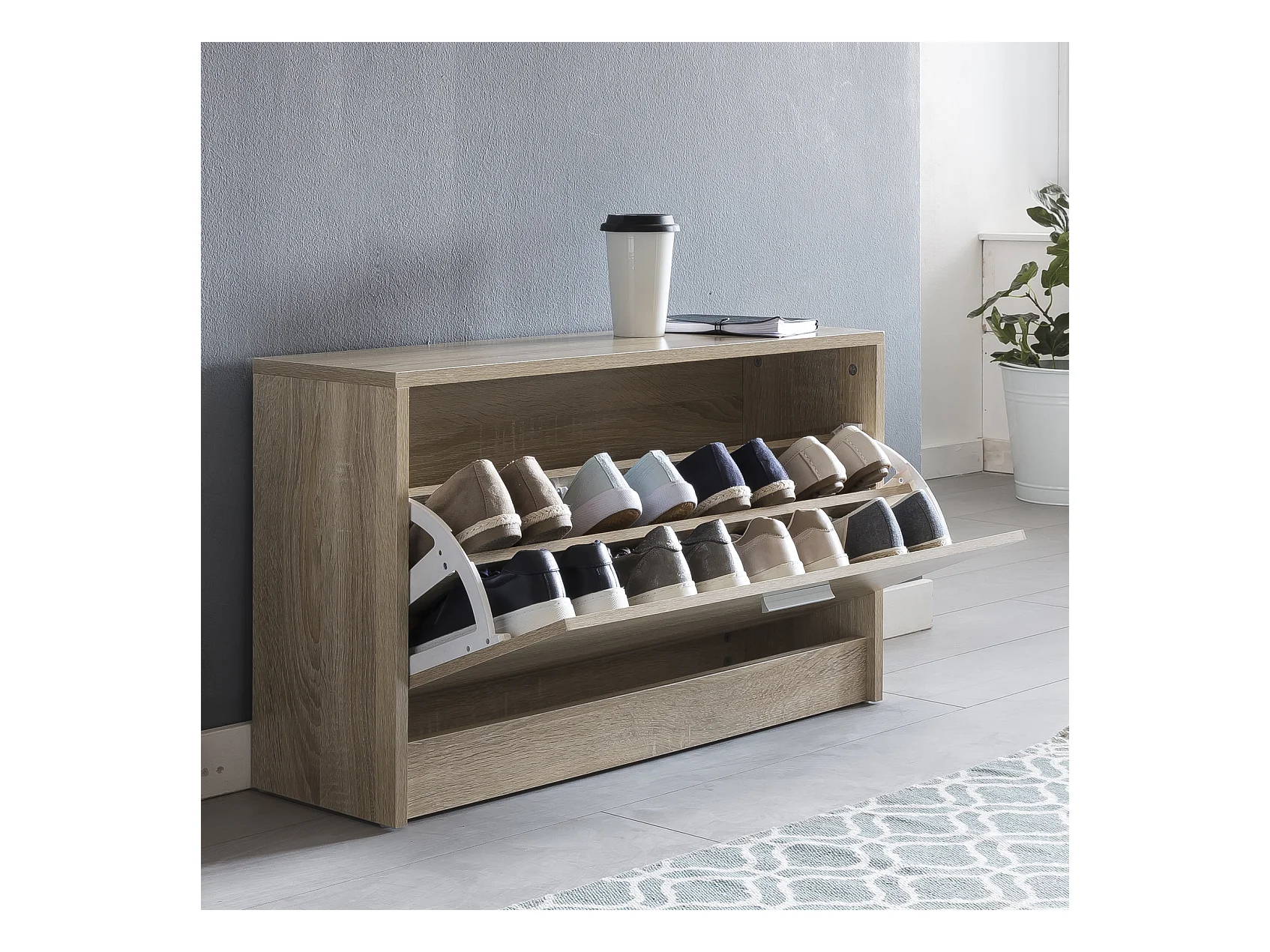 met zitje Sonoma eiken 80 x 47 x 24 cm | Flurbank klein gesloten | Bank smalle gang met bergruimte | Schoenenkast enkel bankje bankje bank hal meubilair