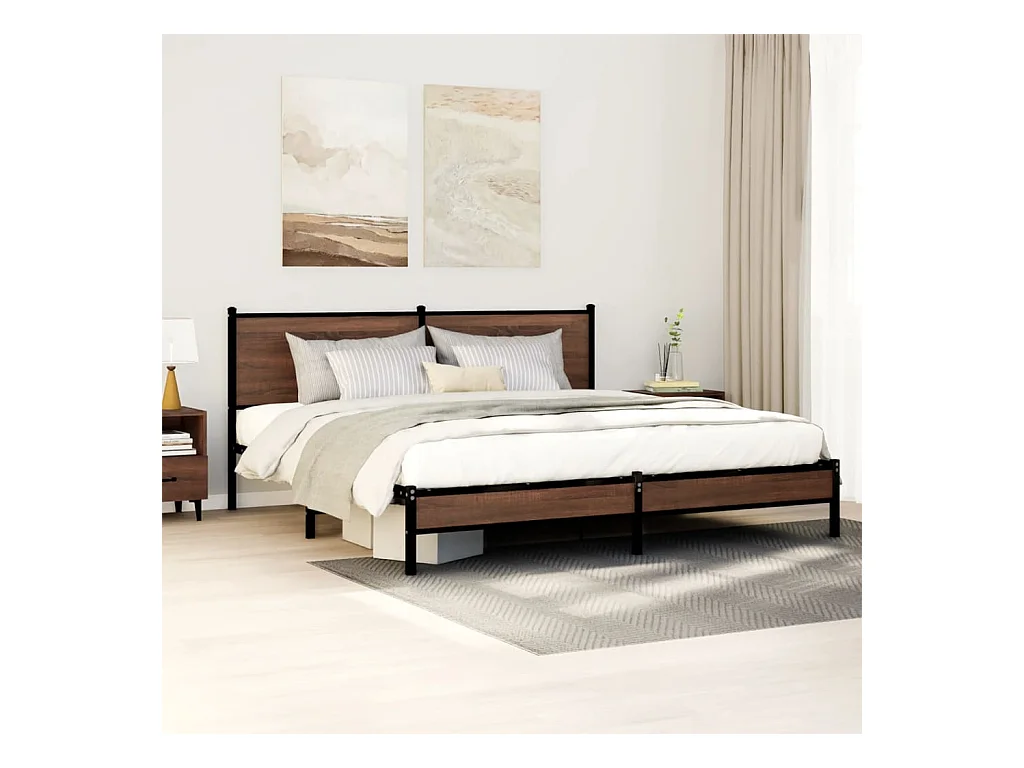 Metalen bedframe zonder matras bruin eiken 160x200 cm